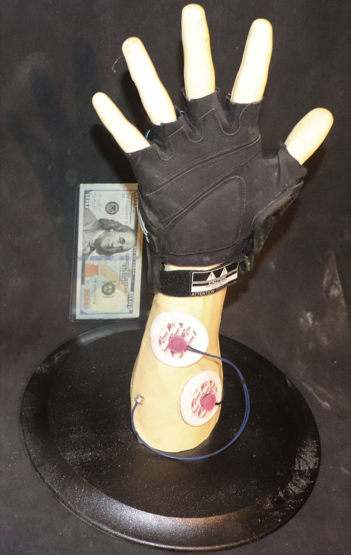 Prototype glove on arm casting of Sebastian Stan, mounted on base so instant gratification out of the box!