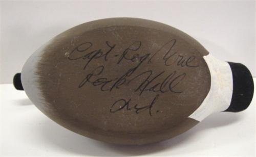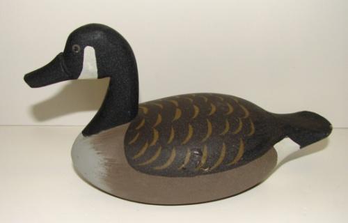 CAPTAIN ROY URIE, ROCK HALL, MARYLAND, MINIATURE CANADA GOOSE DECOY. Signed on bottom "Capt. Roy Urie/Rock Hall/Md." Shows minor loss to paint at tail. 6.5" L