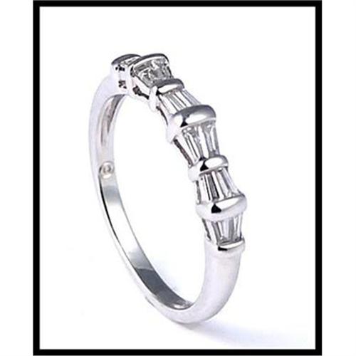 This extremely elegant ring has a unique design. The 12 taper beget diamonds weigh approximately .40 carats TW and they are set in platinum. The size 6-1/2 ring measures 4 millimeters (5/16 inches) wide.