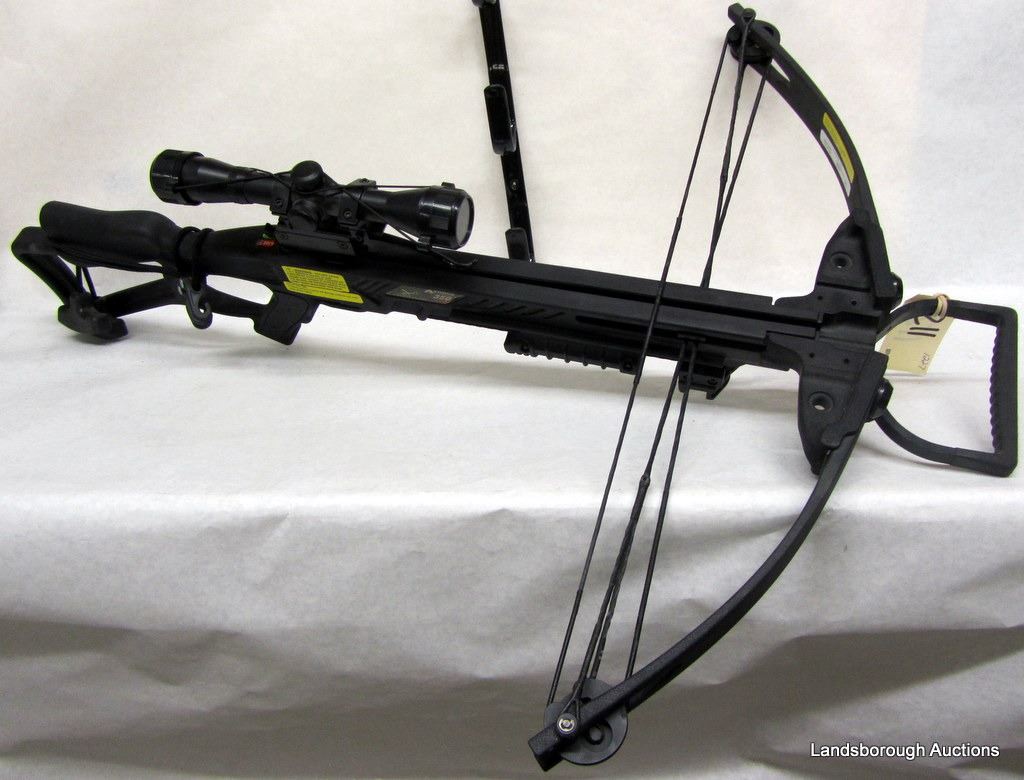 IN VERY GOOD CONDITION WITH 4X32 SCOPE AND COCKING AIDE. 165LBS