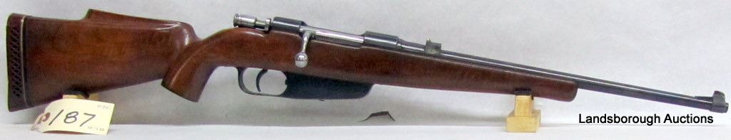 NON-RESTRICTED, BOLT ACTION, 6.5 X 54 MS, 18" BARREL, SN 1785. WOOD HAS A FEW DENTS, SCRATCHES AND MARKS, SMALL CRACK BEHIND RECEIVER, BLUING IS FADING, BORE VERY GOOD.