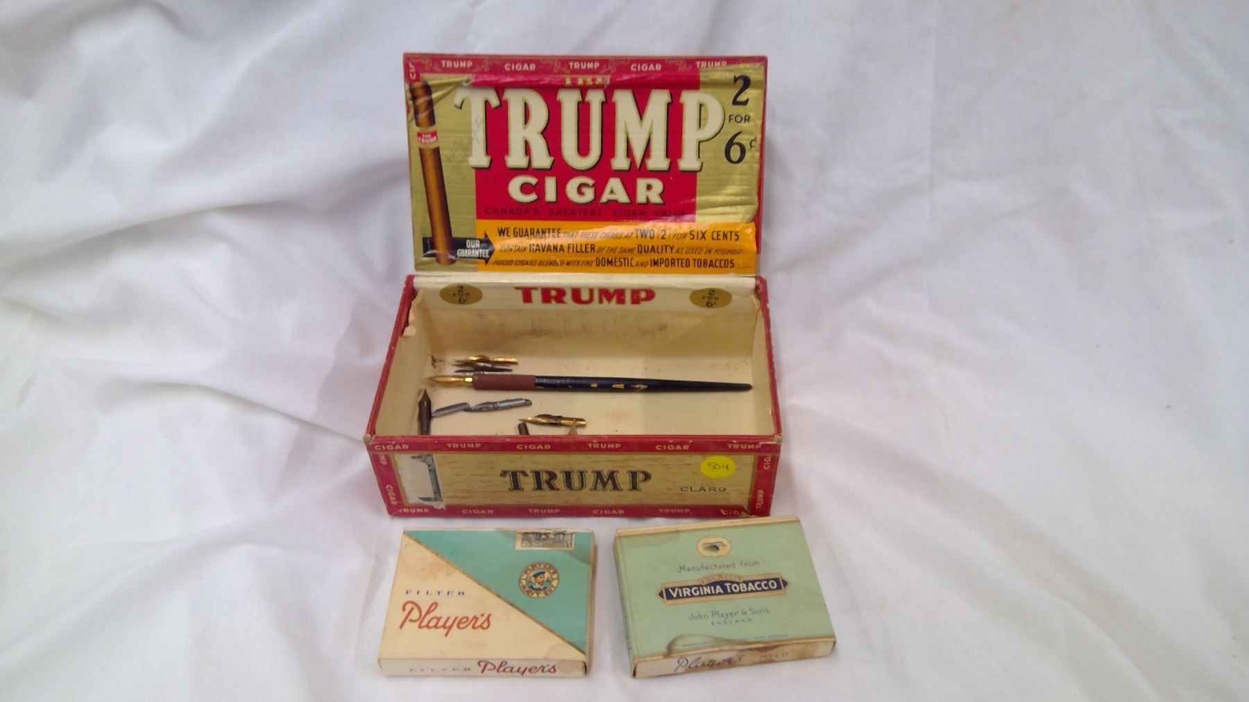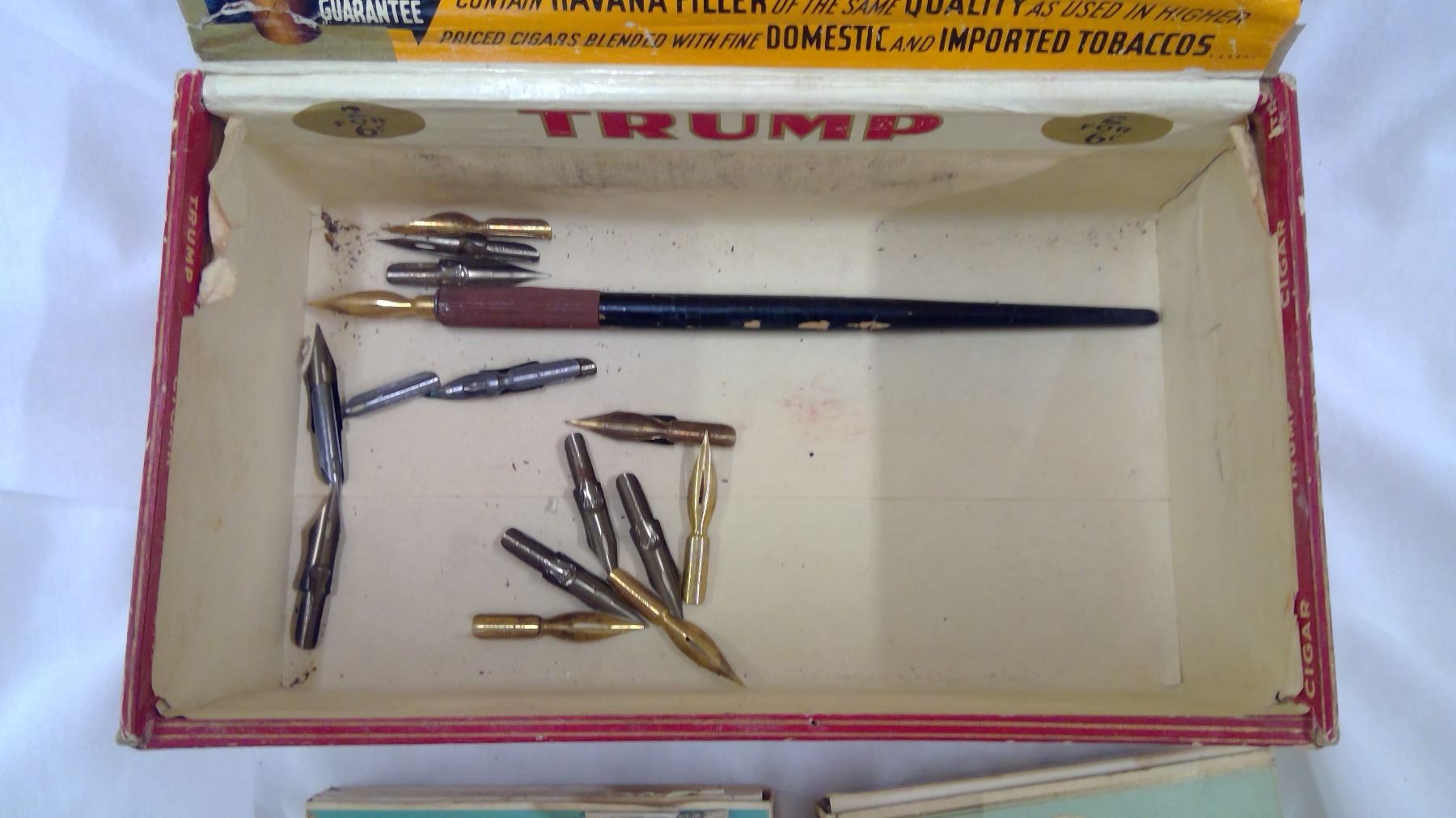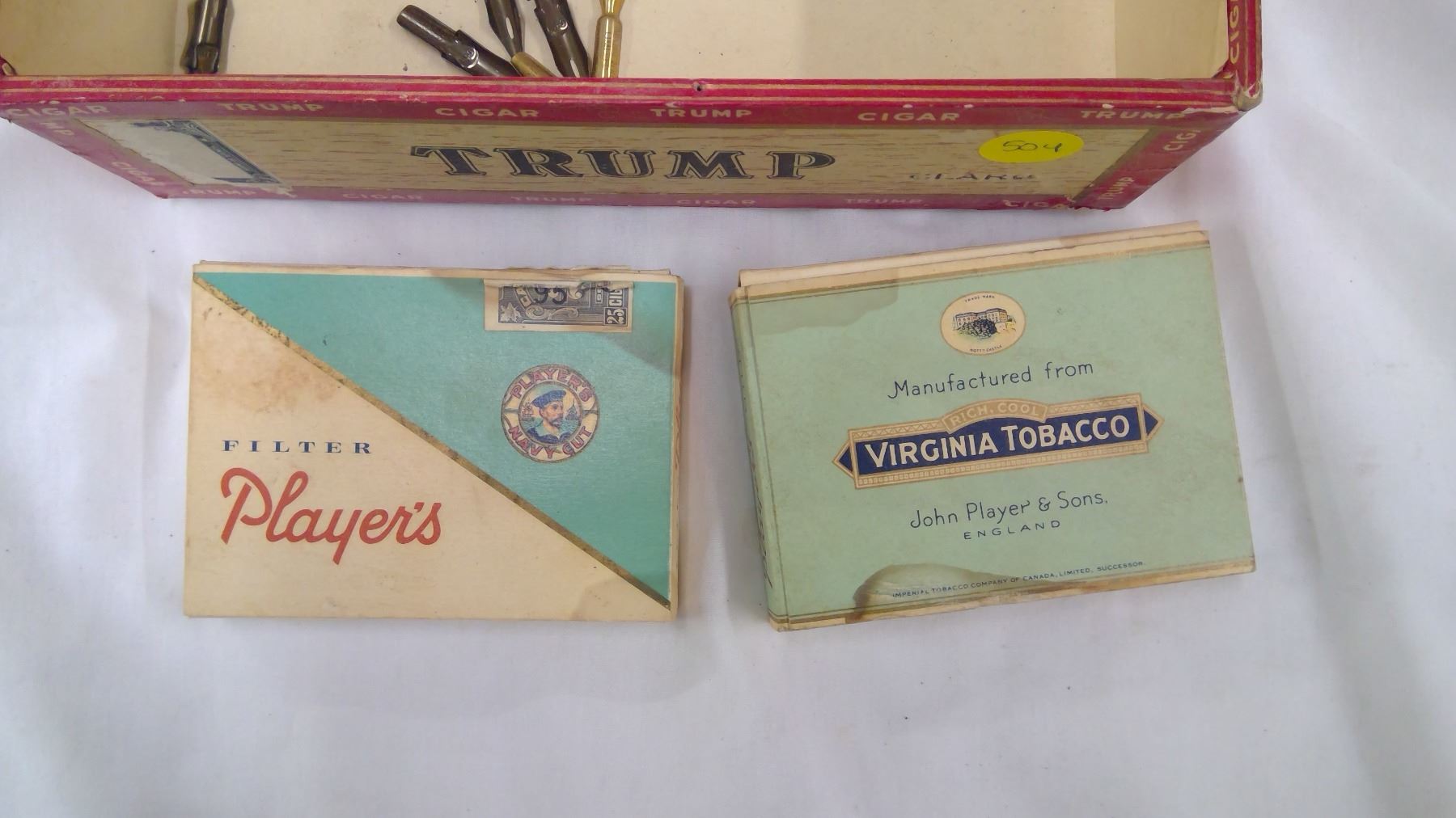 CARDBOARD CIGARETTE BOXES, NIBS INSIDE CIGAR BOX