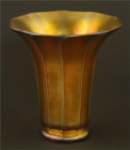 CARDER STEUBEN GOLD AURENE VASE design 913, ribbed shade form, signed, 5 1/2" high