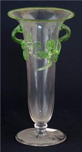 CARDER STEUBEN MATSU-NOKE GLASS VASE clear transparent body with applied decoration of branches and leaves, unsigned, 10" high