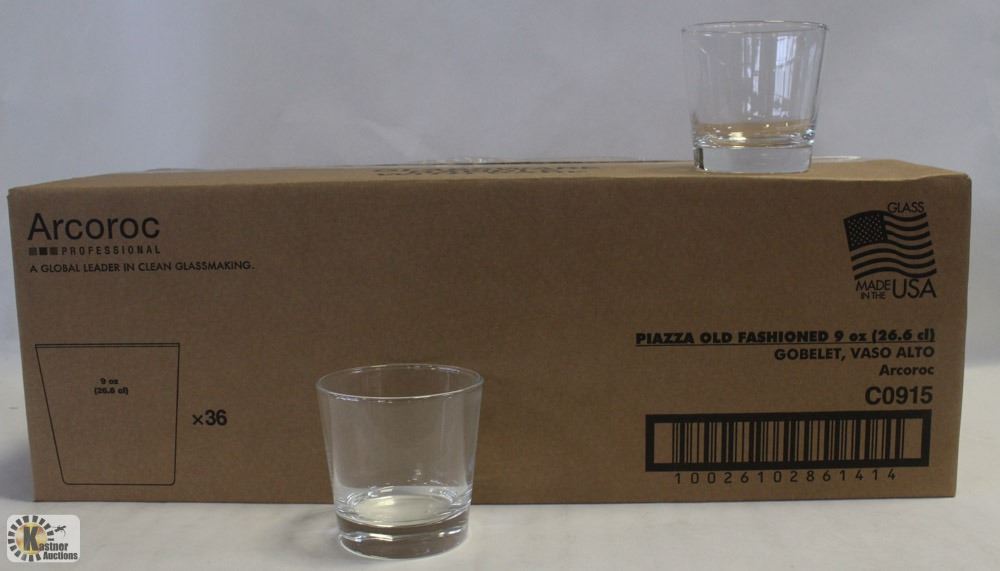 ARC18 - NEW, 1 CASE OF 36 CARDINAL CO915 ELEMENTAL PIAZZA 9 OZ OLD FASHIONED GLASS, MADE IN THE USA