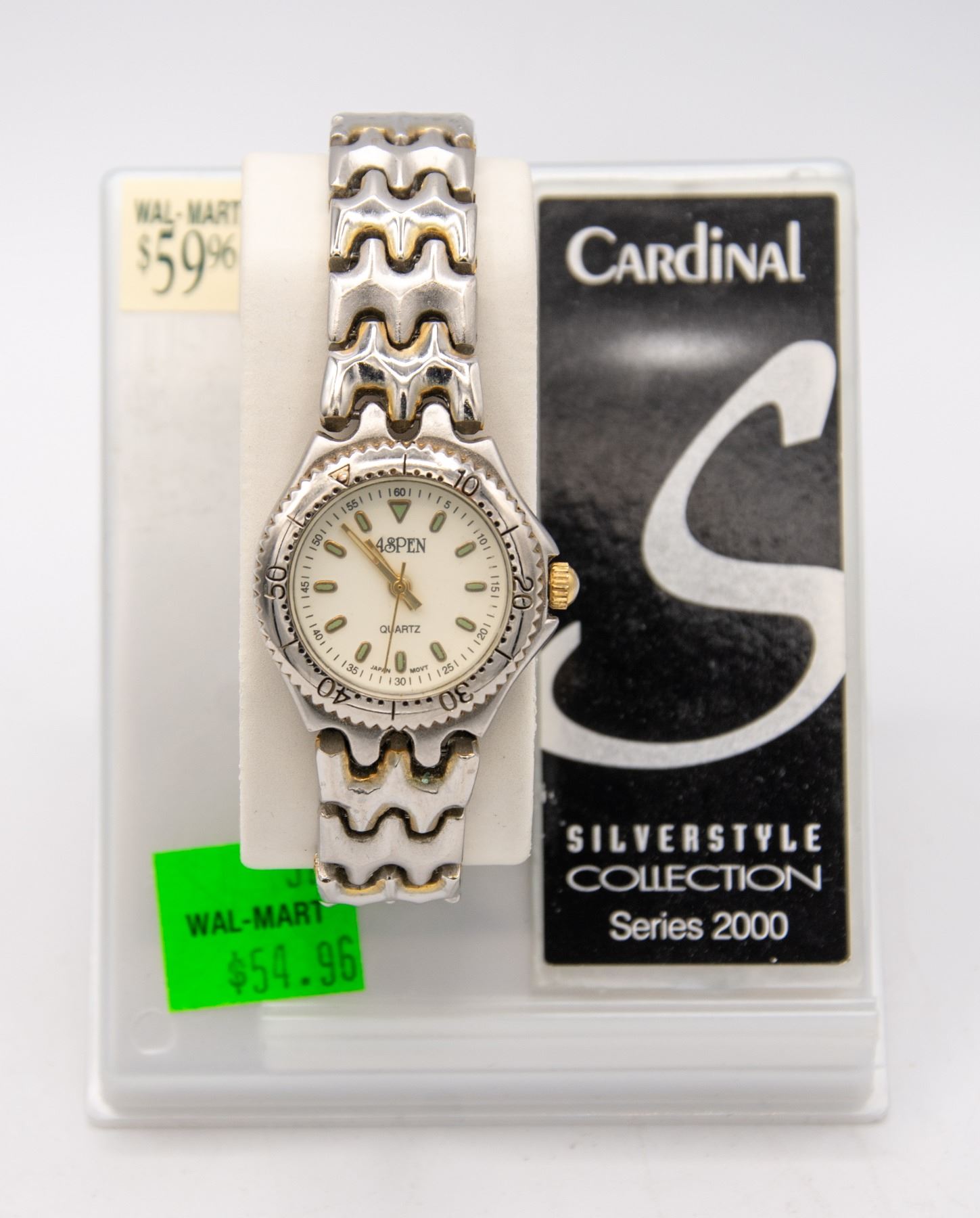 3 HAND WOMENS WATCH W/ SILVER & GOLD TONE ACCENTS- ASPEN QUARTZ **ALL ITEMS MUST BE REMOVED BY 5PM SATURDAY, MARCH 18TH 2023. ALL REMAINING ITEMS WILL BE SUBJECT TO A $6.00 PER DAY STORAGE CHARGE. ANY ITEMS REMAINING AFTER MONDAY, APRIL 3RD, 2023 WILL BE CONSIDERED FORFEITED. NO REFUNDS WILL BE ISSUED FOR FORFEITED ITEMS. TO SCHEDULE A PICK UP APPOINTMENT CLICK HERE