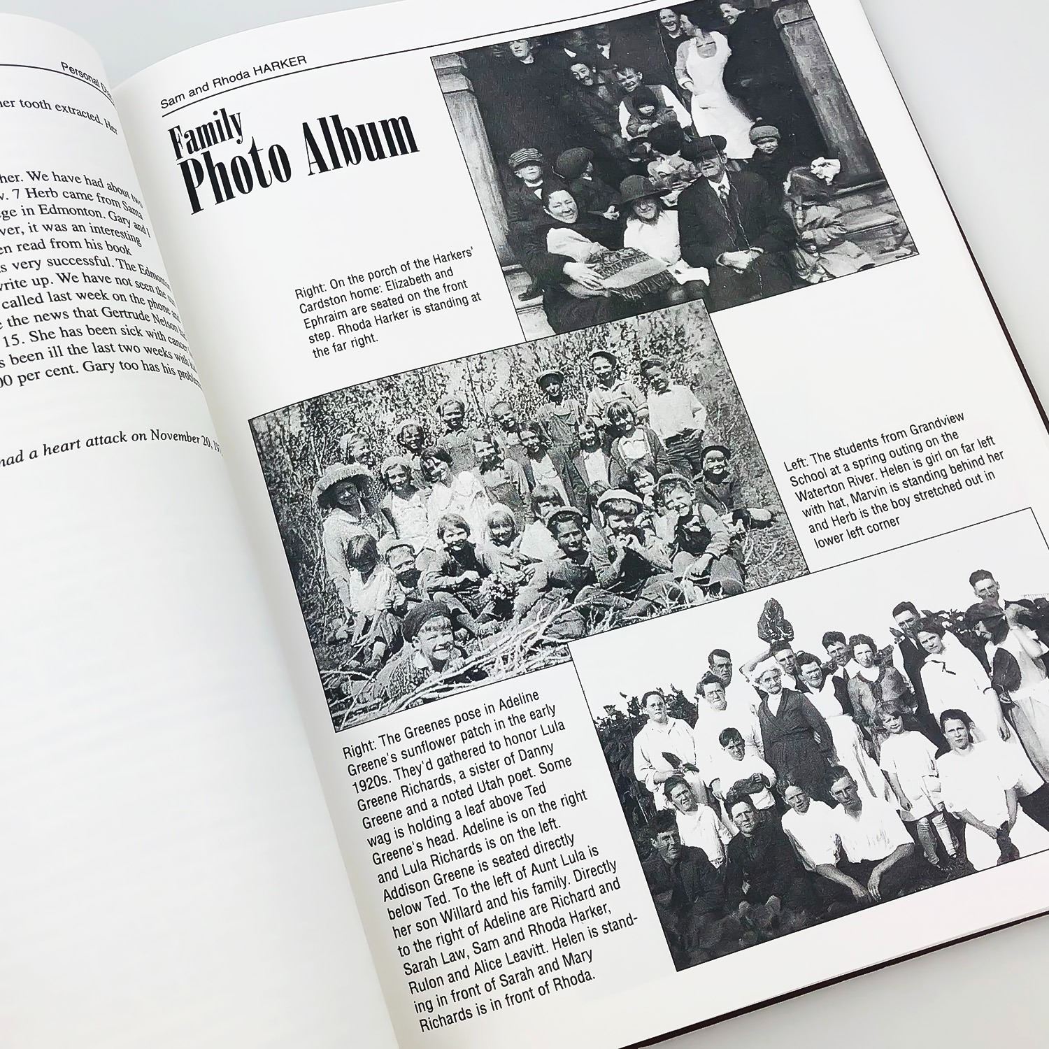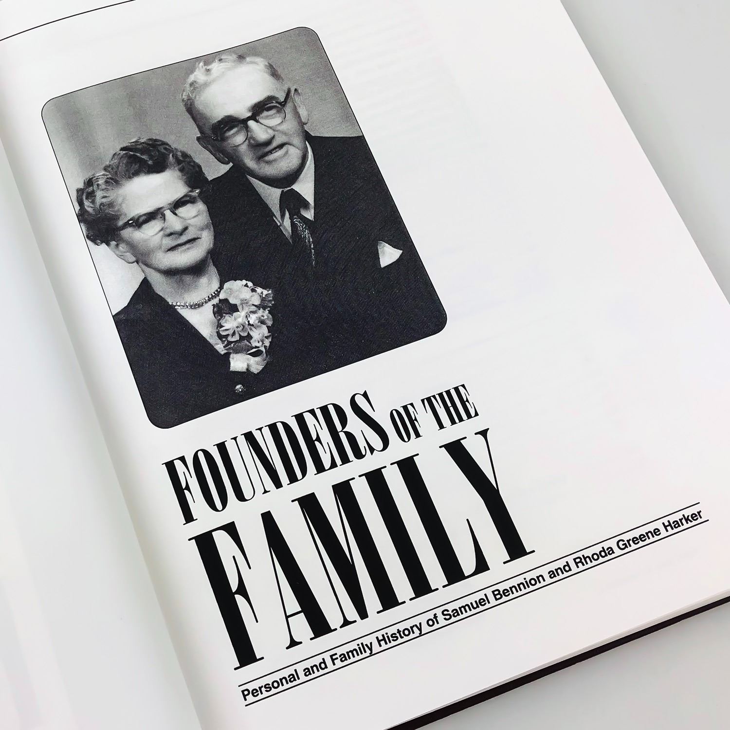 #8358 - ALBERTA HISTORY - FOUNDERS OF THE FAMILY - PERSONAL & FAMILY HISTORY OF SAMUEL BENNION & RHODA GREENS HARKER. CARDSTON & AREA, ALBERTA, CANADA. HARDCOVER BOOK - 220 PAGES. MEASURES: 8.75” (22 CM) X 11.5” (29 CM)