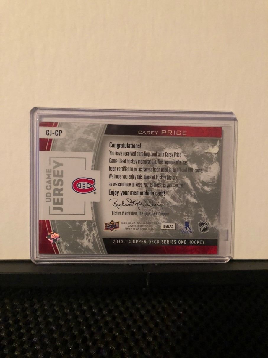 CAREY PRICE 2013-14 UD GAME JERSEY SERIES 1