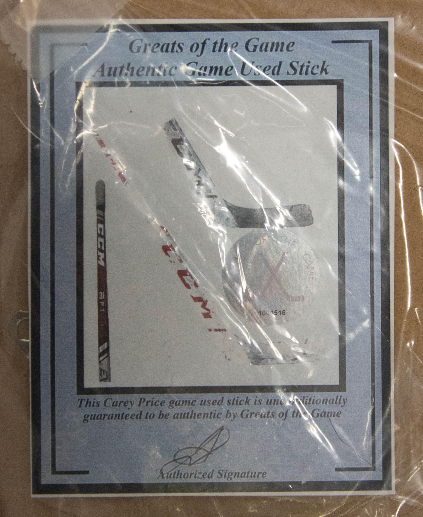 CAREY PRICE MONTREAL CANADIENS GAME USED STICK COA