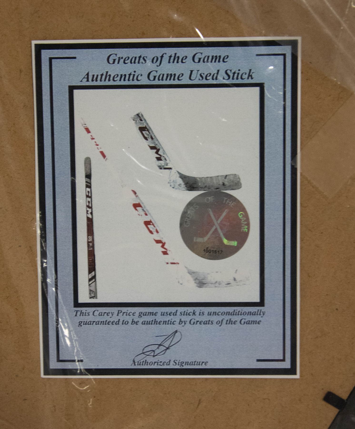 CAREY PRICE MONTREAL CANADIENS GAME USED STICK COA