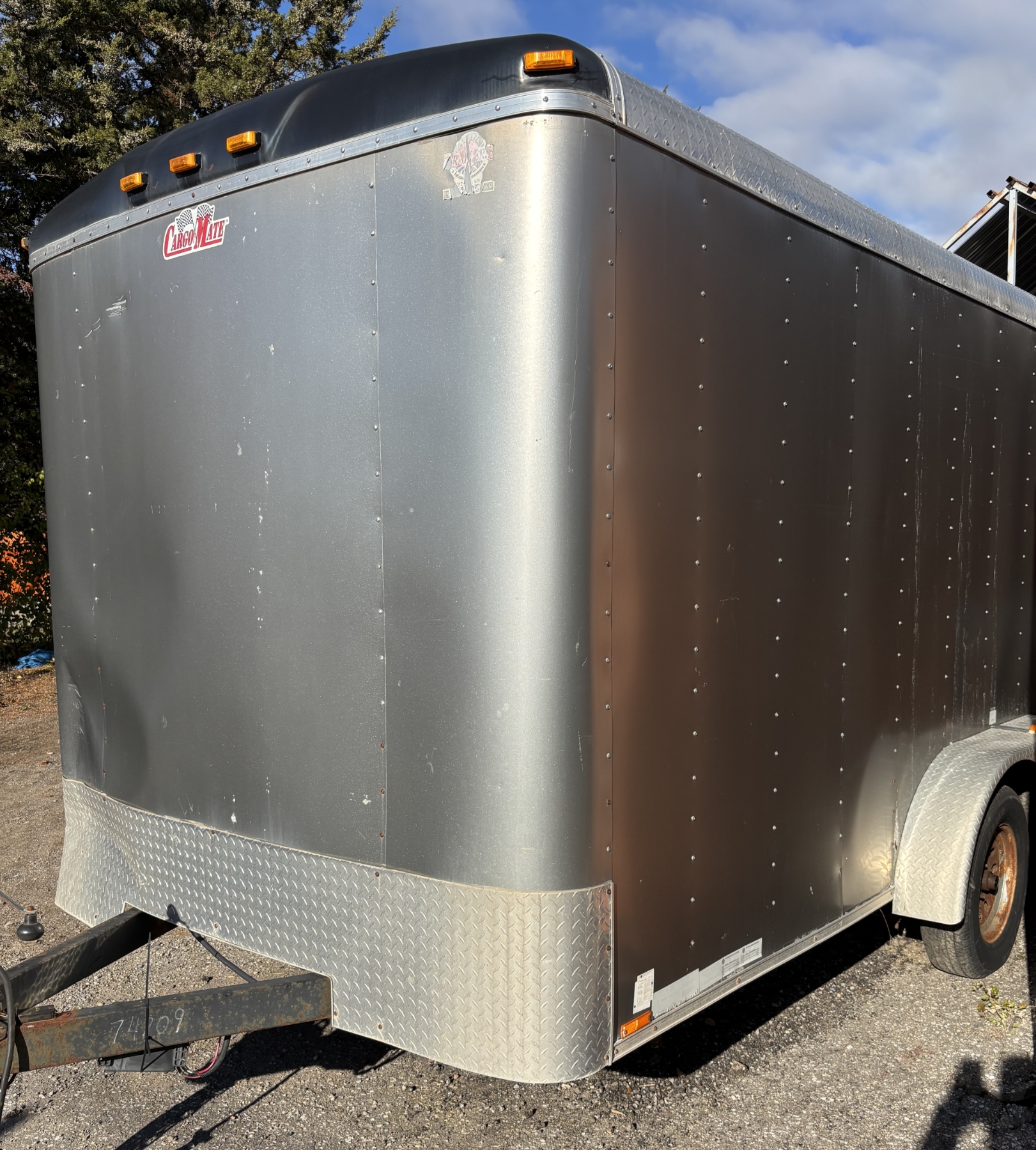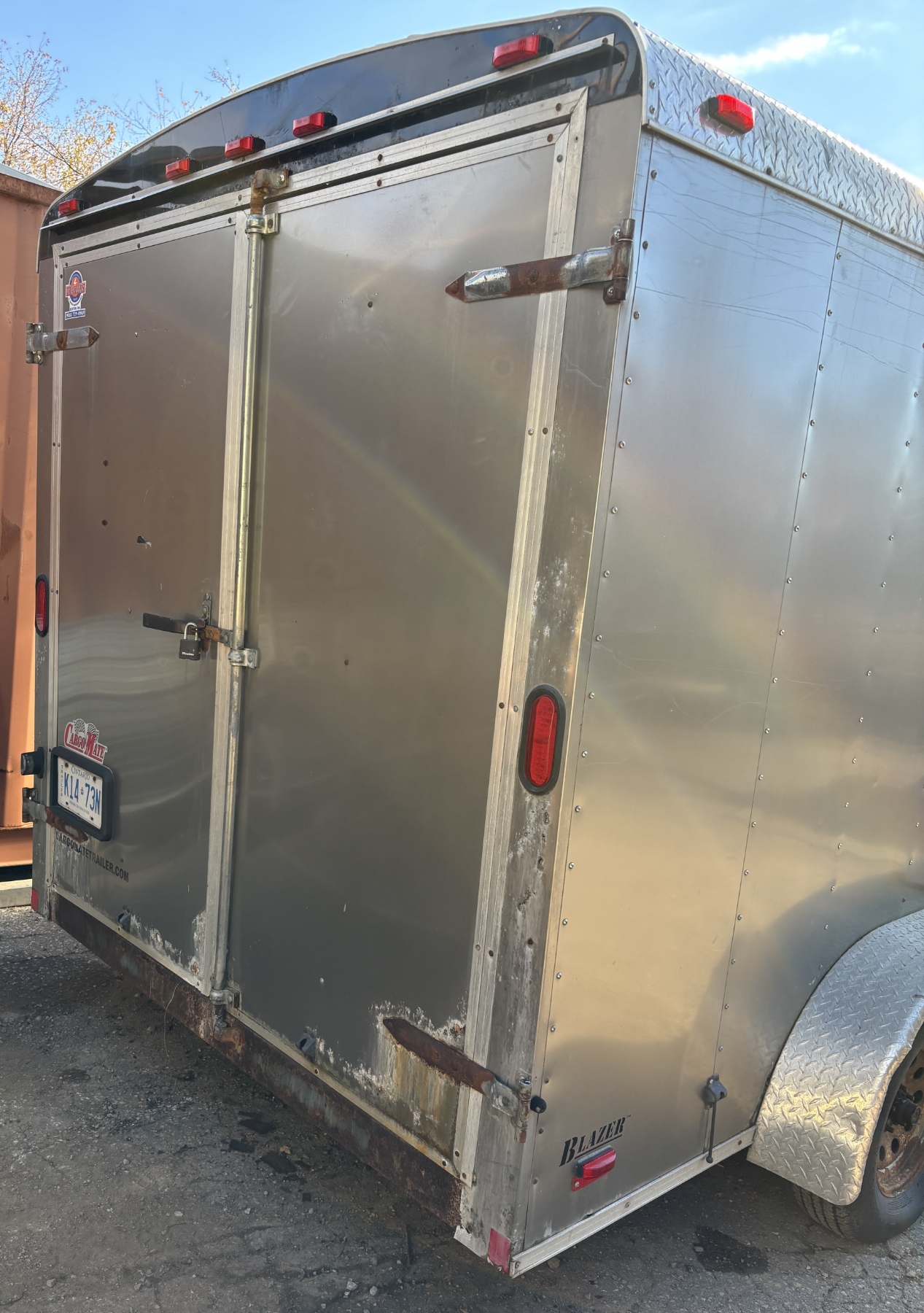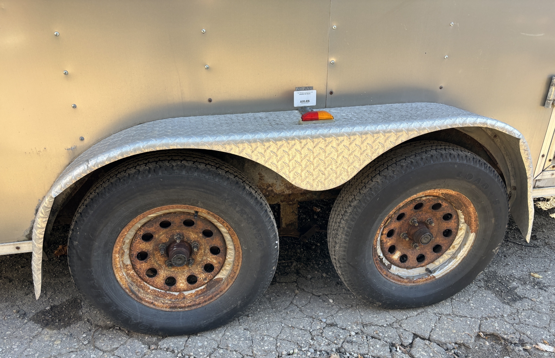 NOTE: TANDUM. BARNDOOR STYLE. NO RAMP. OWNERSHIP. 2 5/16 INCH BALL. MINOR DAMAGE.