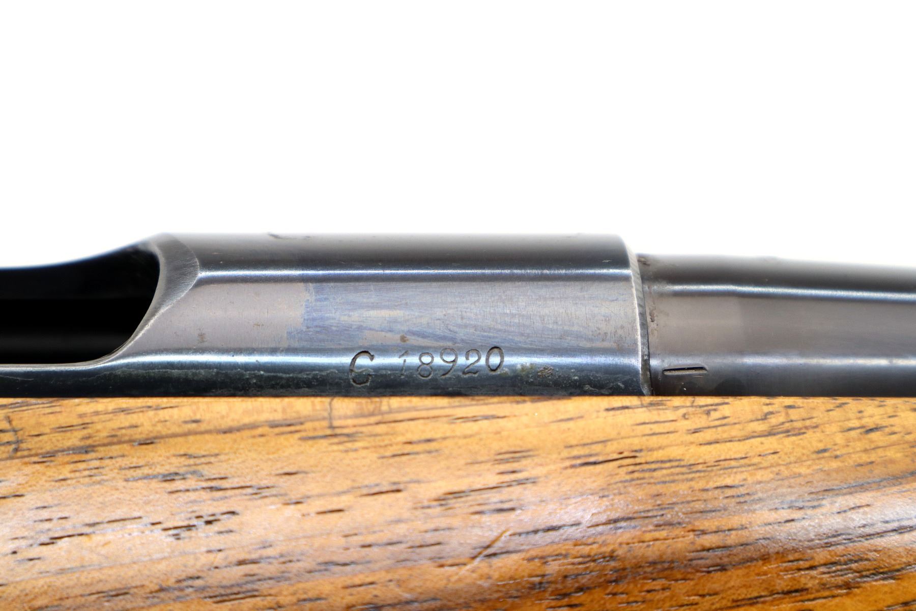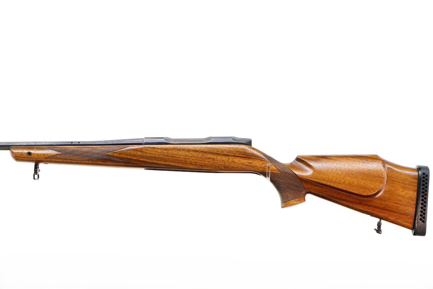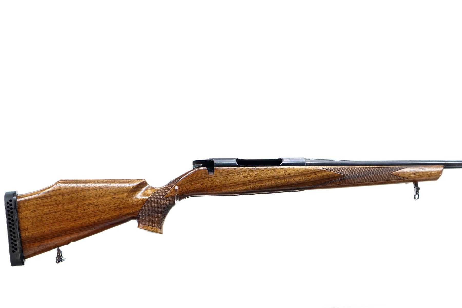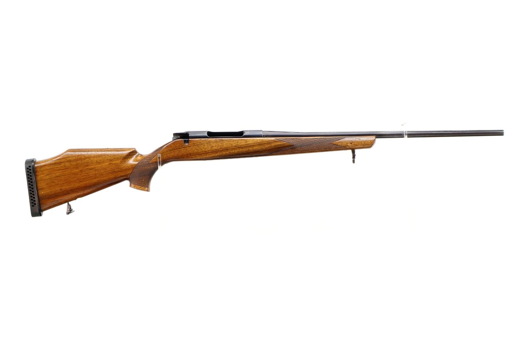 Main Description: Includes: Barrel and receiver with blued finish. One piece wood stock, checkered forearm with hole on left side, checkered pistol grip, cheek rest, black vented rubber recoil pad which requires fitting, sling swivels. Does not include bolt, trigger parts, trigger guard assembly, action screws and possibly other small parts.