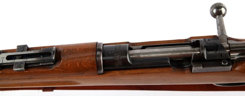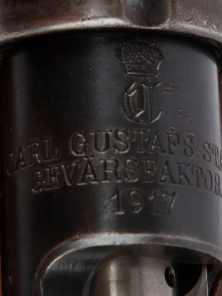 Swedish M96 Mauser manufactured at Carl Gustafs Stads Gevarsfaktori, and dated 1917. Very good bore with strong rifling. Bluing is about 90%, and action is crisp and strong. Stock shows a few mild handling marks, but is overall very good. Overall very good condition. Caliber: 6.5 X 55MM Serial #: 431577