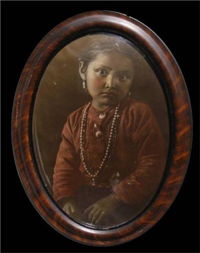 1 CARL MOON TINTED PHOTOGRAPH titled verso, "Na Dez Pah" 19"x13" oval, in convex frame from the estate of Carl Moon signed "Karl Moon" lower center, original convex frame, never opened, excellent estimate 2500-3500