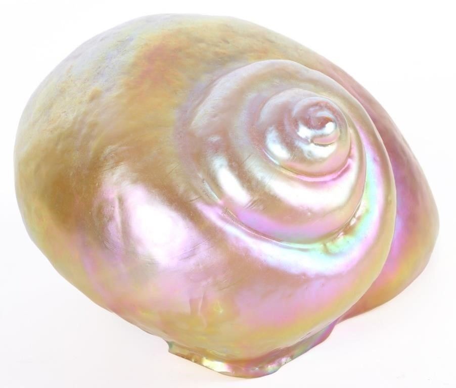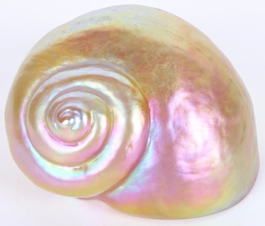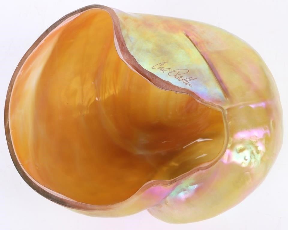 Carl Radke (American) Phoenix art glass iridescent shell. Carl Radke was one of the vanguard of young artist who participated in the Renaissance of American Art Glass in the early 1970s. Originated by Tiffany in 1881. and popular during the early part of the nineteenth century. Lustre Art Glass had fallen out of favor about 1925. and had practically become a lost art. The art programs of several California universities began to rekindle an interest in Silver Lustre Art Glass specifically, in the later part of the 60's. Several of the young artists became facinated by the medium and caught up in the challenge of Re-discovering the complex and sophisticated art form.