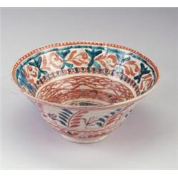 CARL WALTERS tin-glazed flaring bowl, 1925, with salmon and teal animals and leaves on a glossy b...
