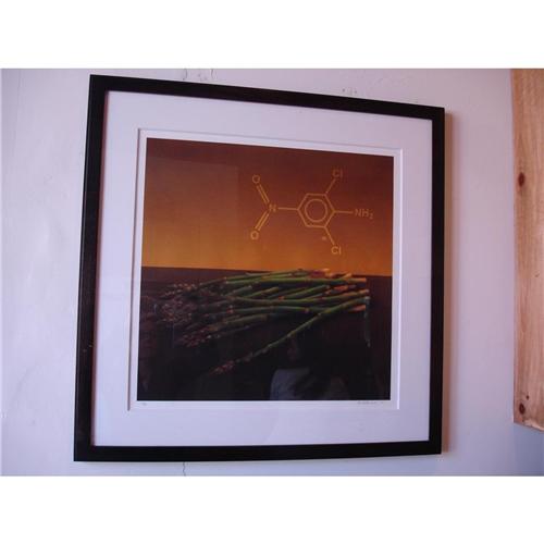 “Asparagus & Botran”; 2003: Lithograph printed in predominantly amber and green hues. The asparagus contraposed with a chemical signage. Signed “Carlo Marucci”, dated, and numbered 3/14 in pencil.