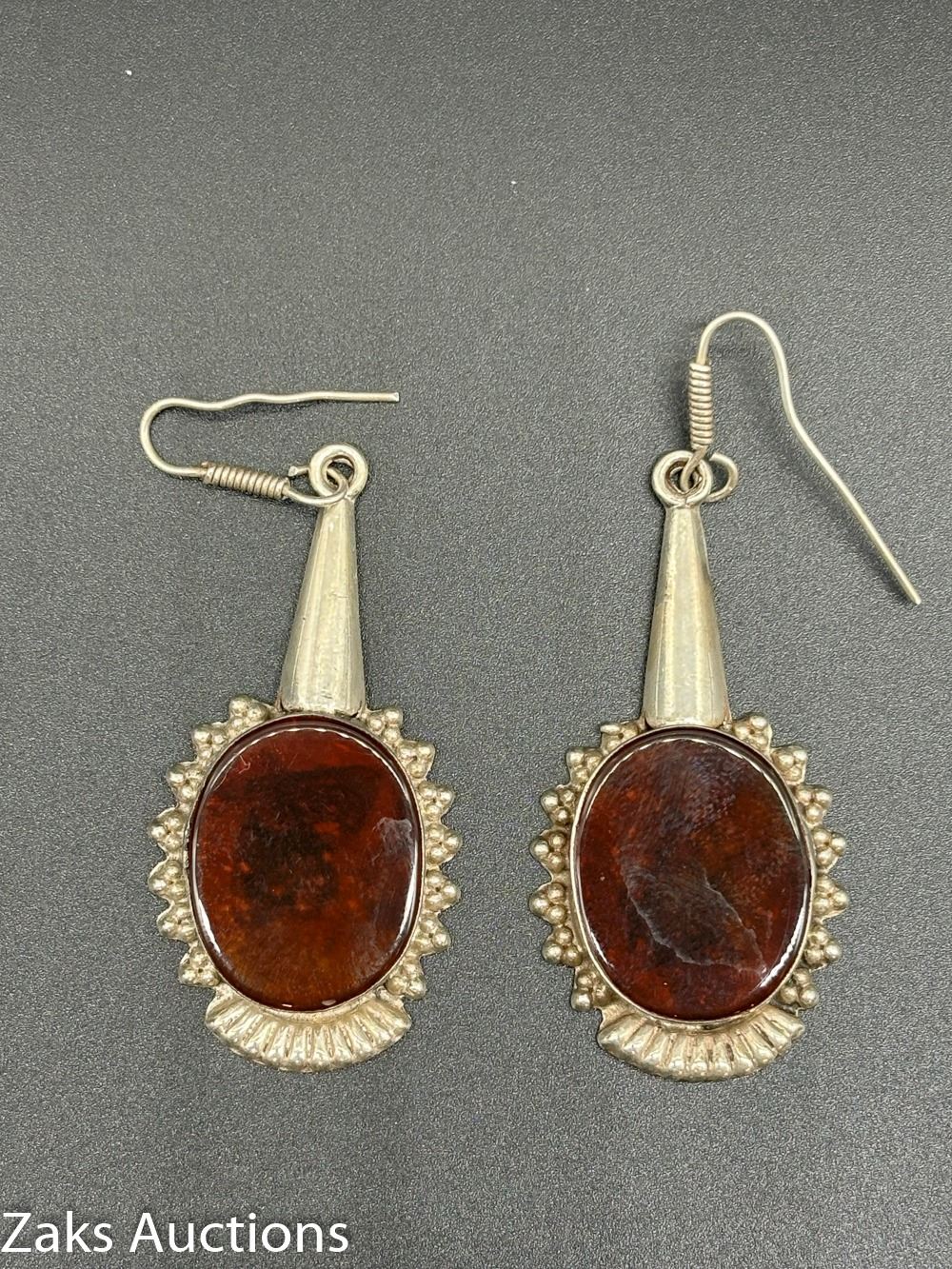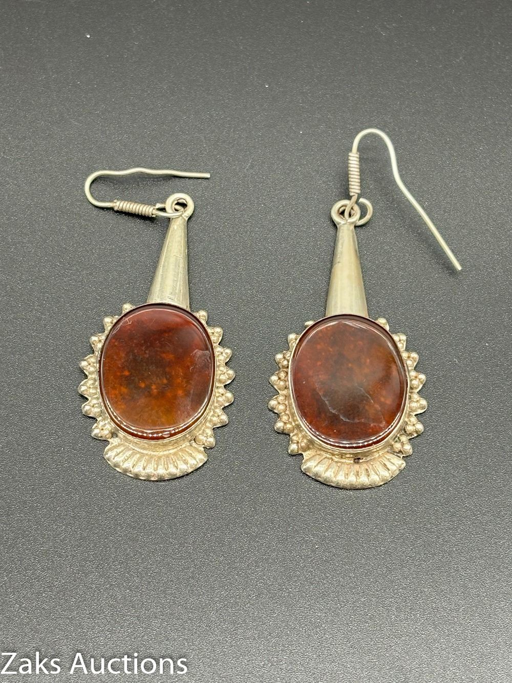 STERLING SILVER LARGE RED CARNELIAN DROP EARRINGS