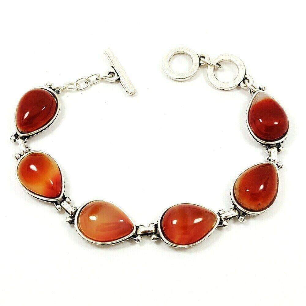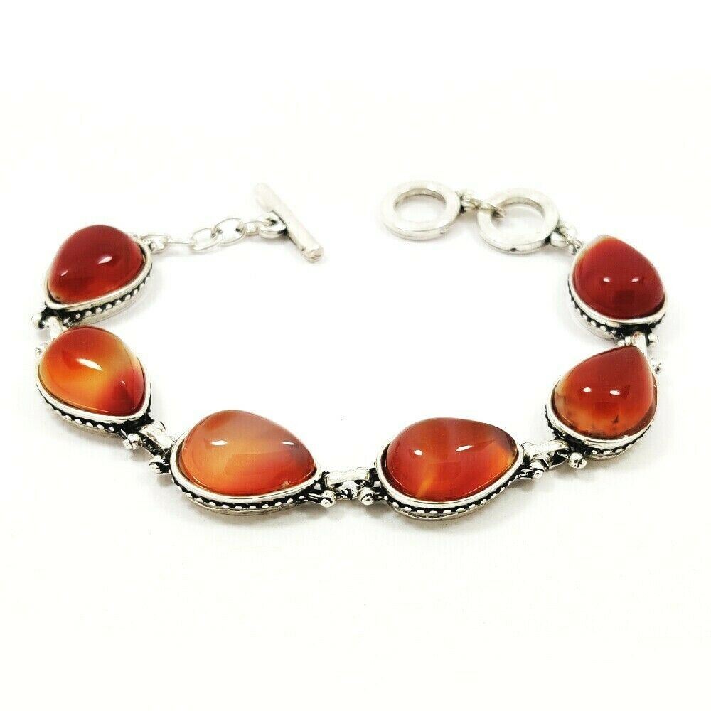 CARNELIAN GEMSTONE SILVER PLATED BRACELET JEWELRY , Gemstone : Carnelian , Gemstone Size : 18x13mm , Gemstone Shape : Pear , Gemstone color : Red , Base Metal : White Brass , Metal Purity : Silver Plated , Bracelet Size : 8 Inches (With Adjustable Links) , Bracelet Weight Weight : 31.500 Gram , Product Code : SGJBRA1007.