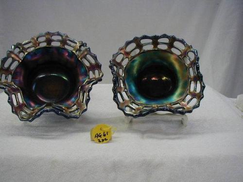 CARNIVAL FENTON OPEN EDGE BASKETWEAVE INCLUDES (1) 6in, (1) 6 1/2in COBALT BASES, EXCELLENT, 2 PC