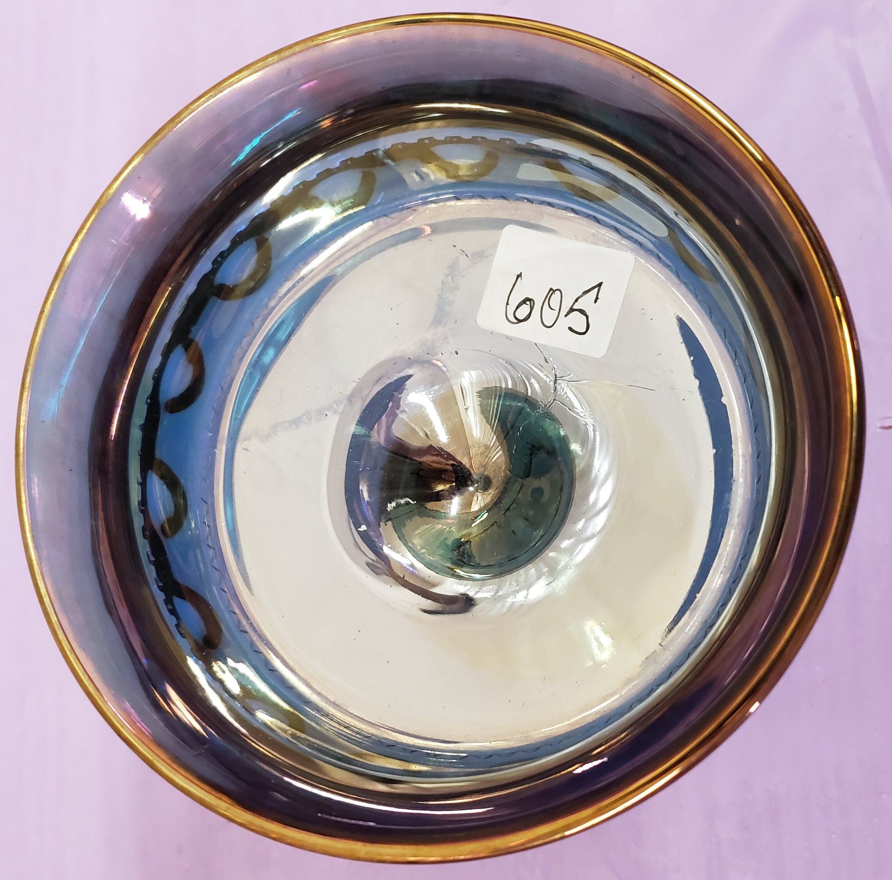 CARNIVAL GLASS CANDY DISH, FOOTED, BLUE