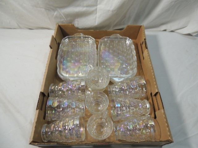 CARNIVAL GLASS SNACK SET LOT PLATES CUPS GLASSES