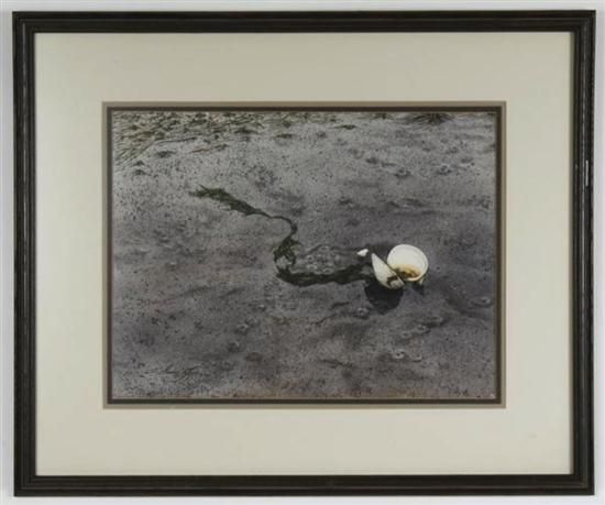 CAROL STECHER-JONES (Washington) WATERCOLOR ON PAPER - Signed beach scene with shell and seaweed titled ~Low Tide~ - Condition good - Dated 1982 - 24~ x 28.5~ framed MWF956
