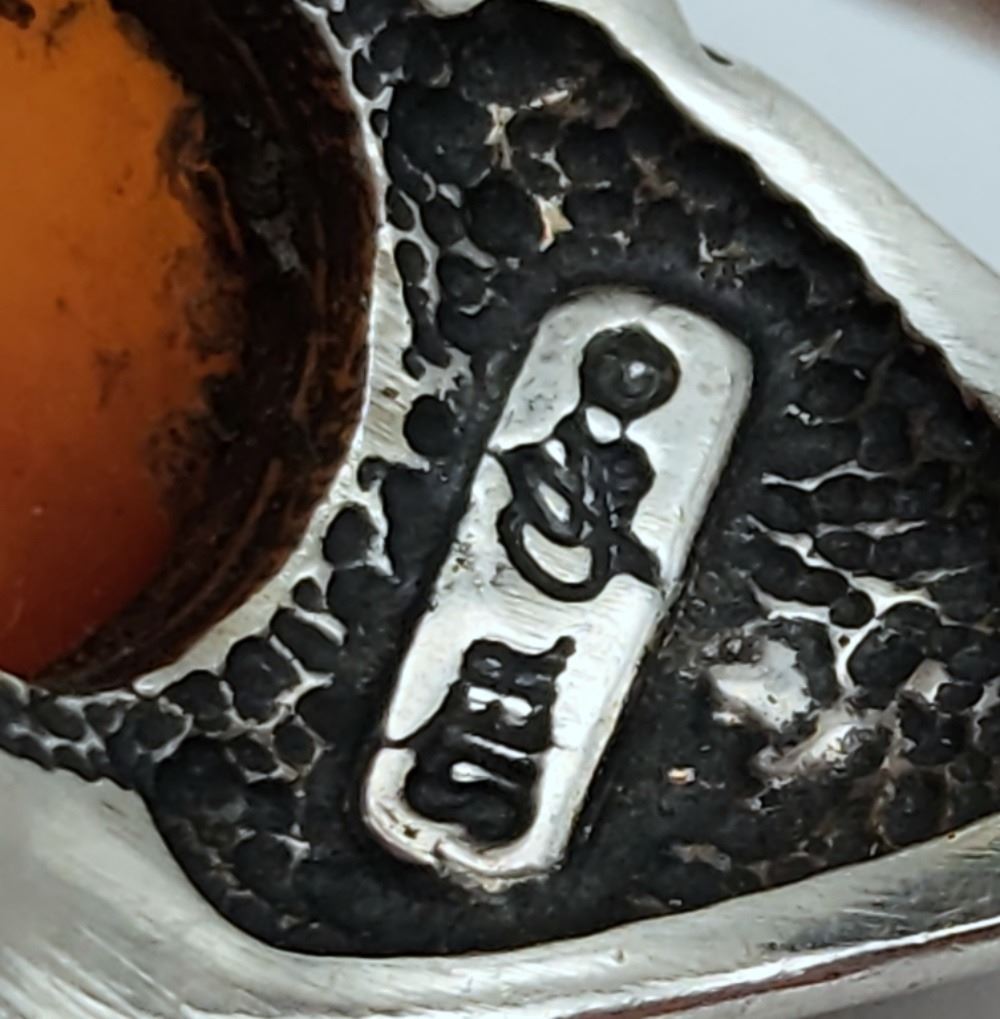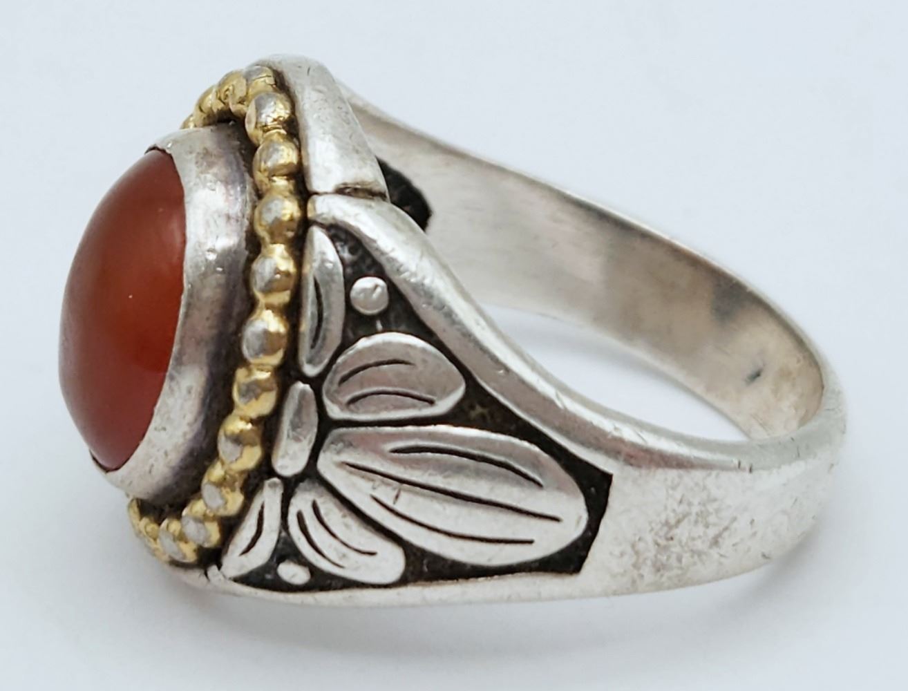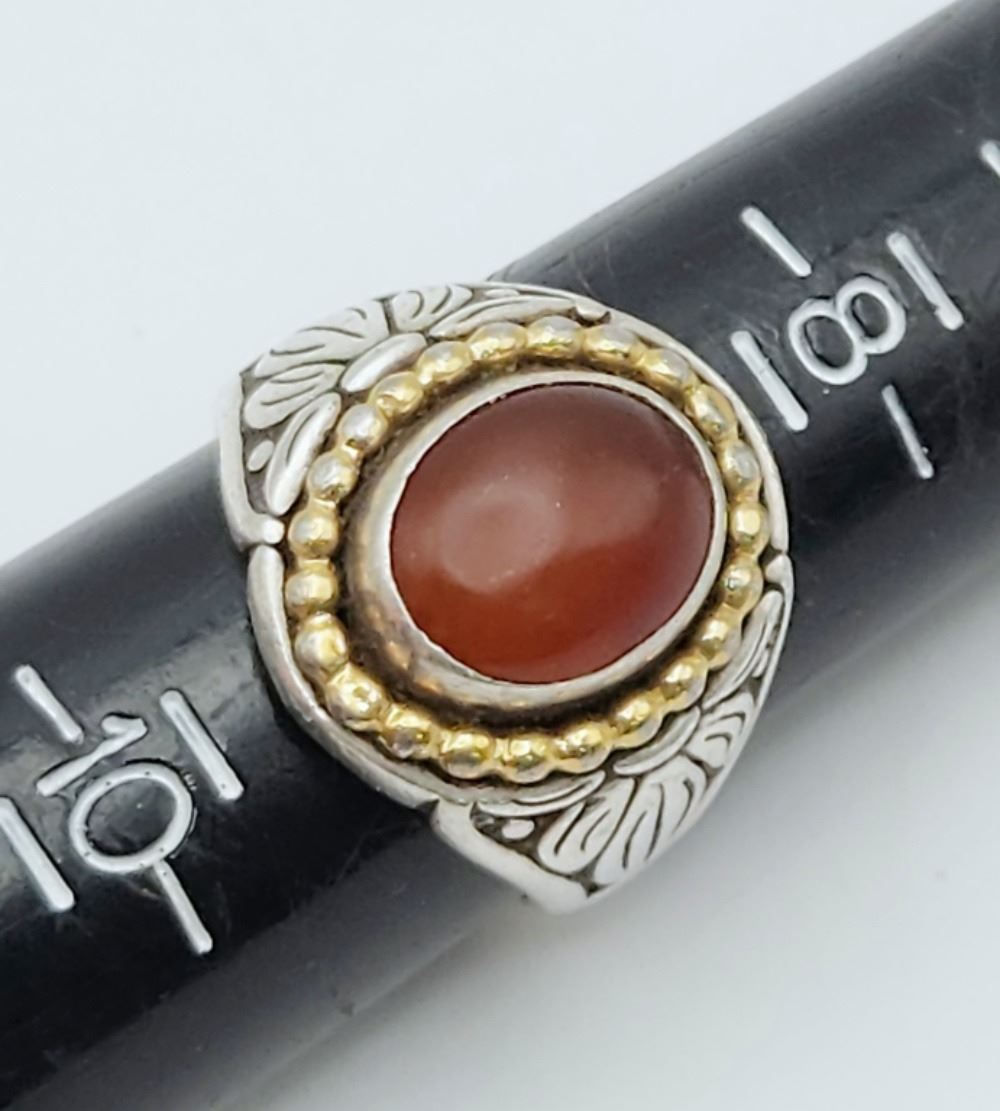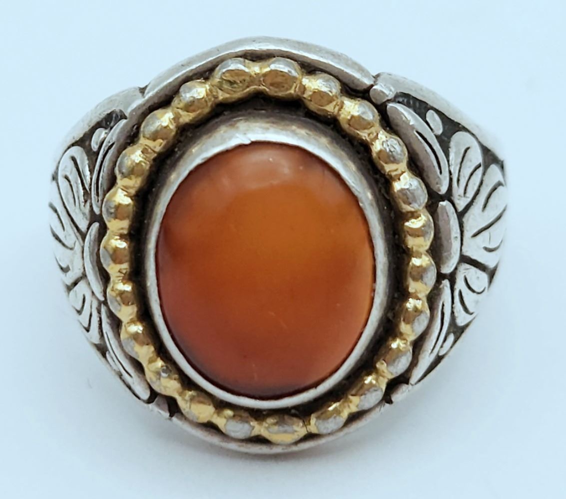 WITH AMBER CENTER STONE GOLD TONE ACCENT AROUND THE BORDER-RING SIZE 9-TOTAL 7 DWT