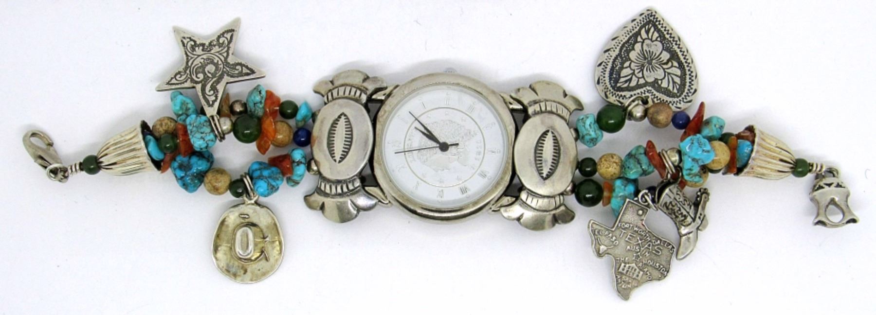 WATCH with STERLING CHARMS & SOUTHWEST BEADS - NEEDS BATTERY REPLACED (43 dwt)