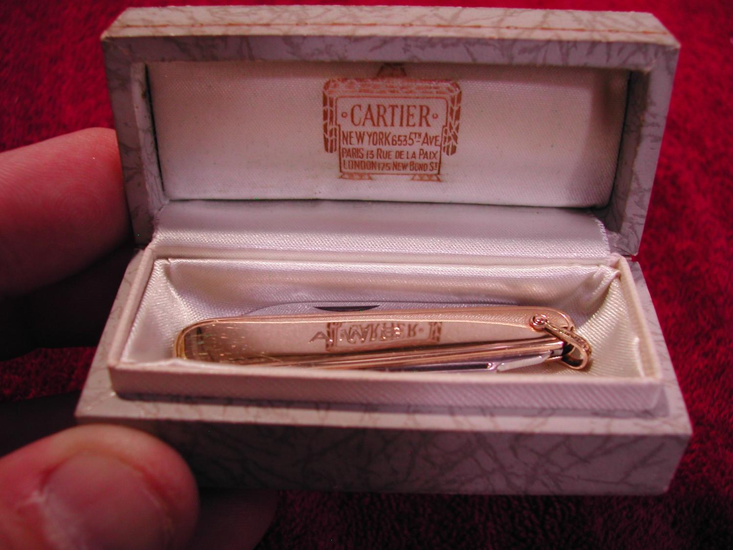 CARTIER 14K AND STAINLESS POCKET KNIFE IN ORIGINAL BOX ,MAKER CARTIER NY 635 5TH AVE, PARIS 13 RUE