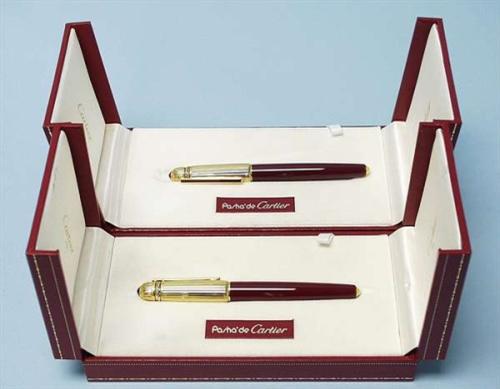 CARTIER, France - A complementary set of gold ball point and fountain pens. In original presentation box. 400-500EA