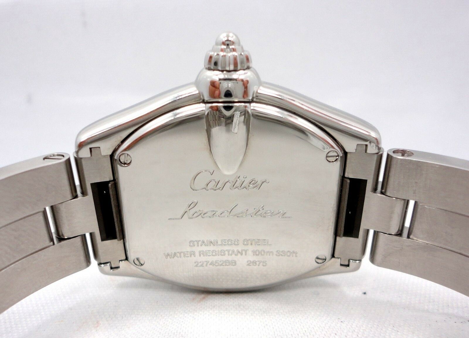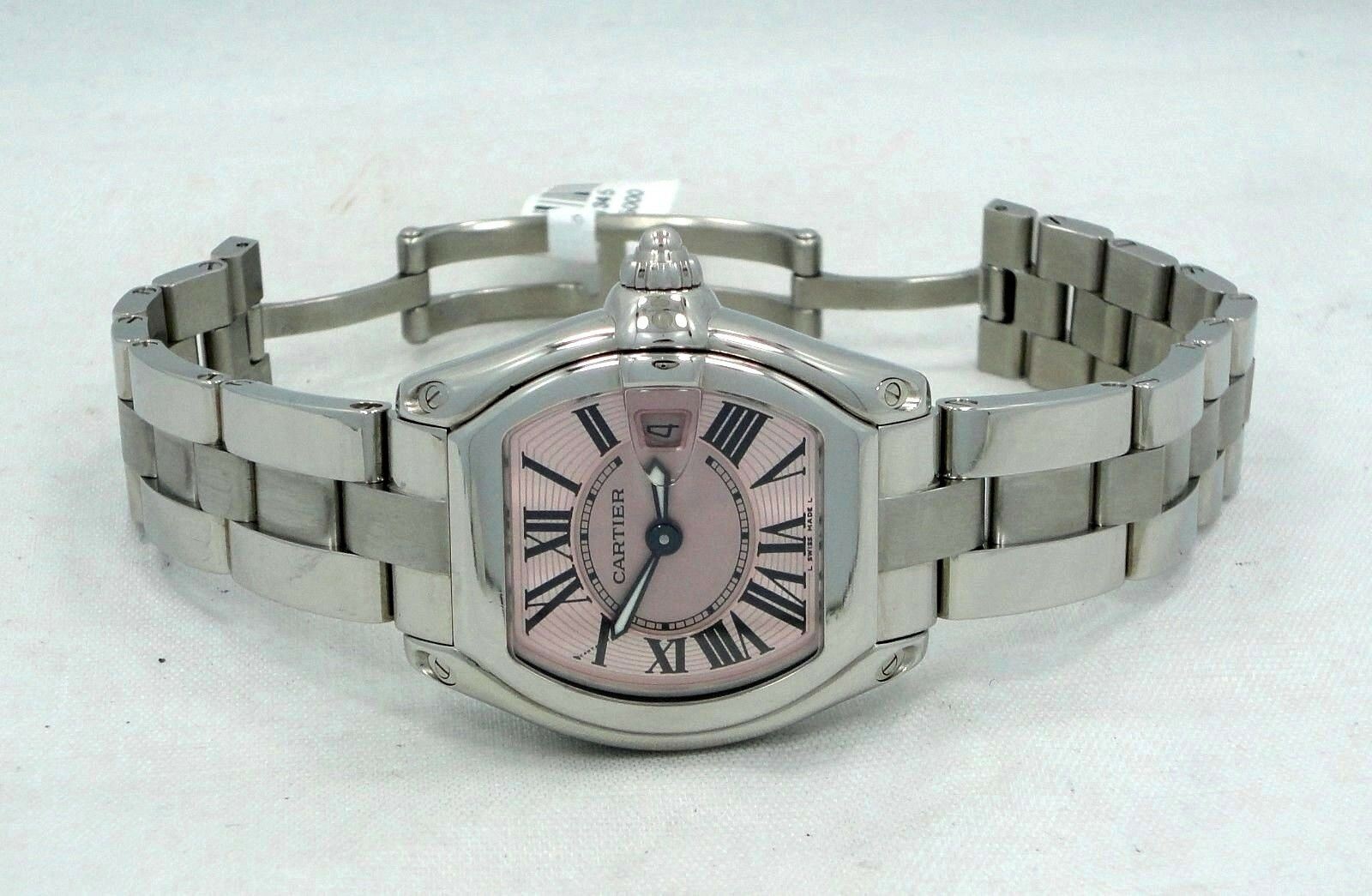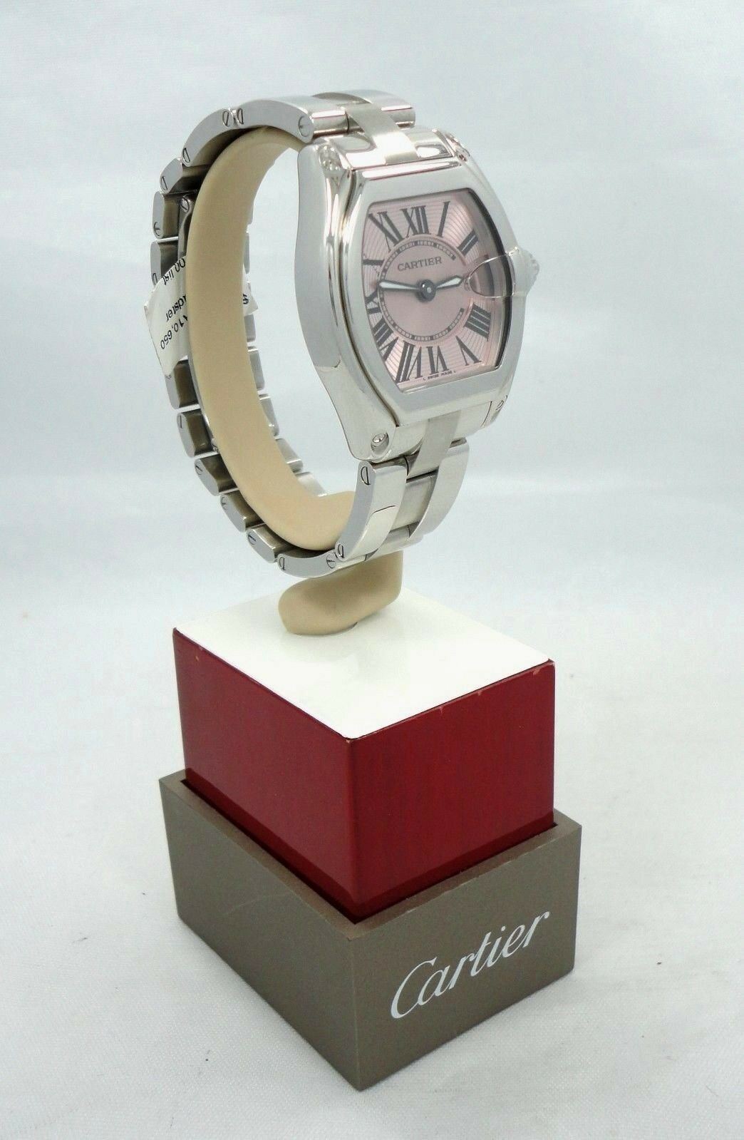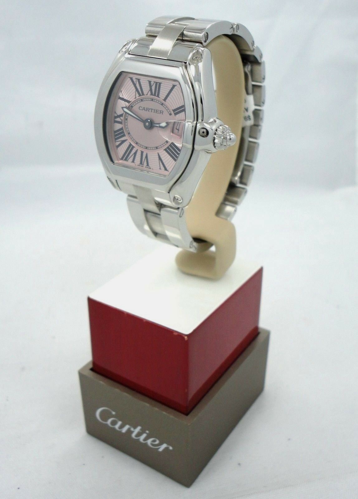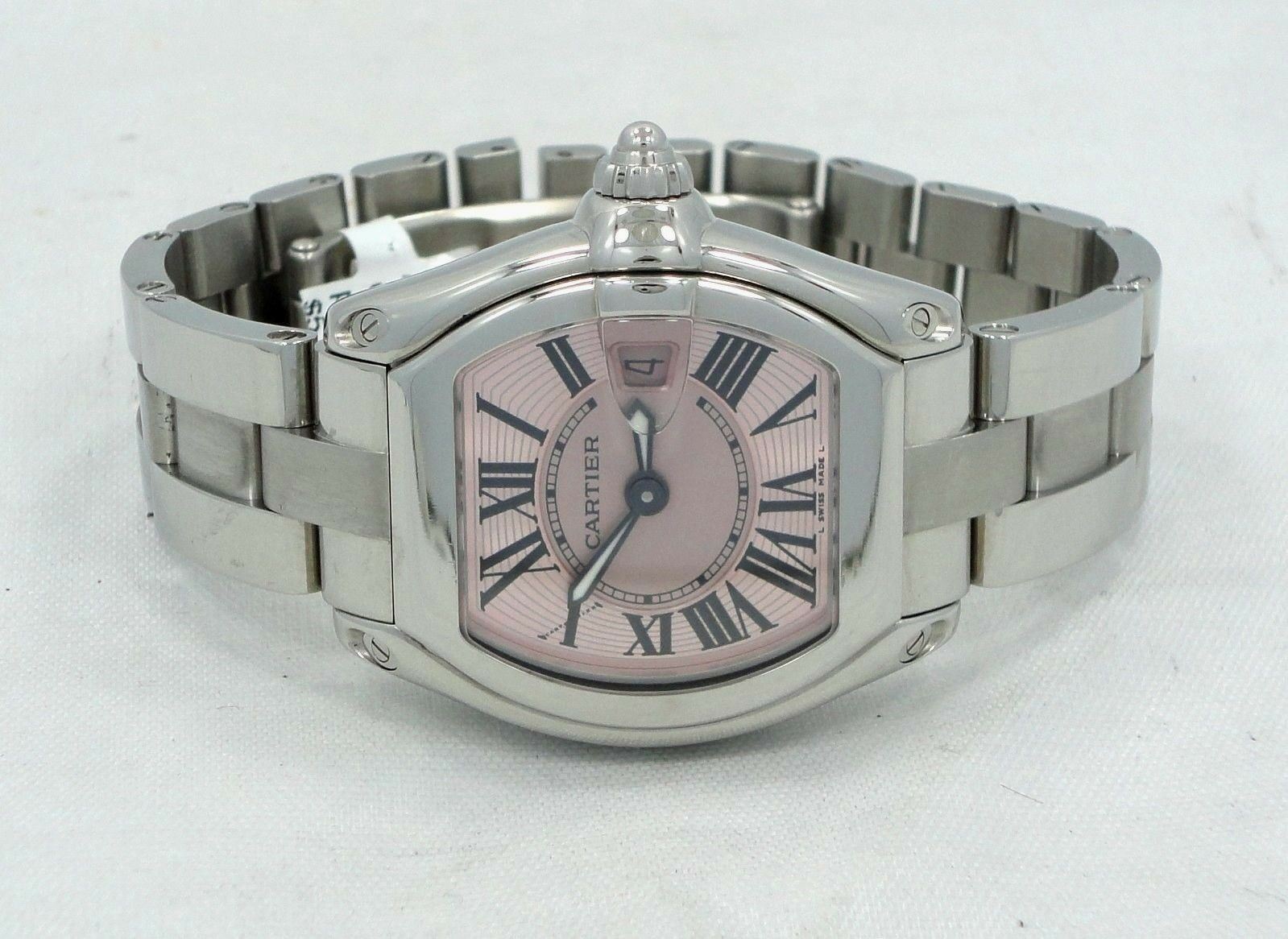 Description: CARTIER ROADSTER STAINLESS STEEL PINK SUNRAY DIAL LADIES WATCH.