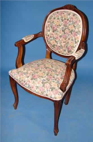 CARVED AND UPHOLSTERED FRENCH PROVINCIAL ARMCHAIR. Excellent condition. 38” H x 20.5” W.