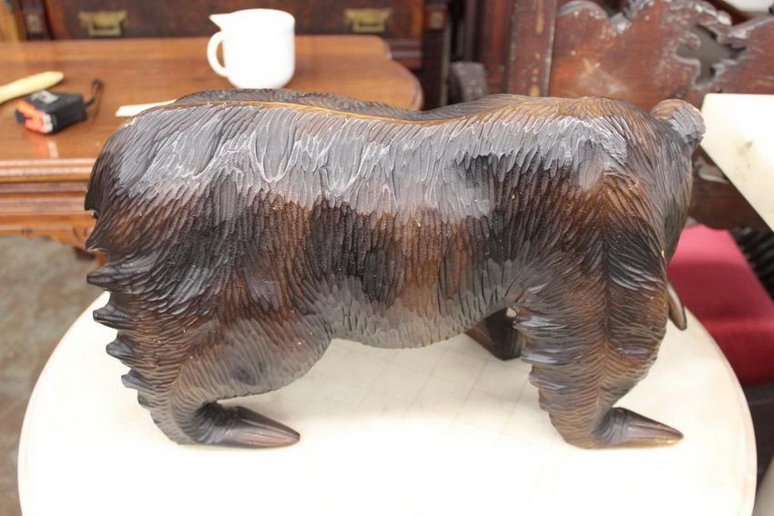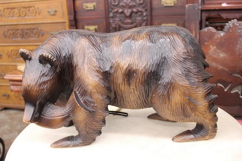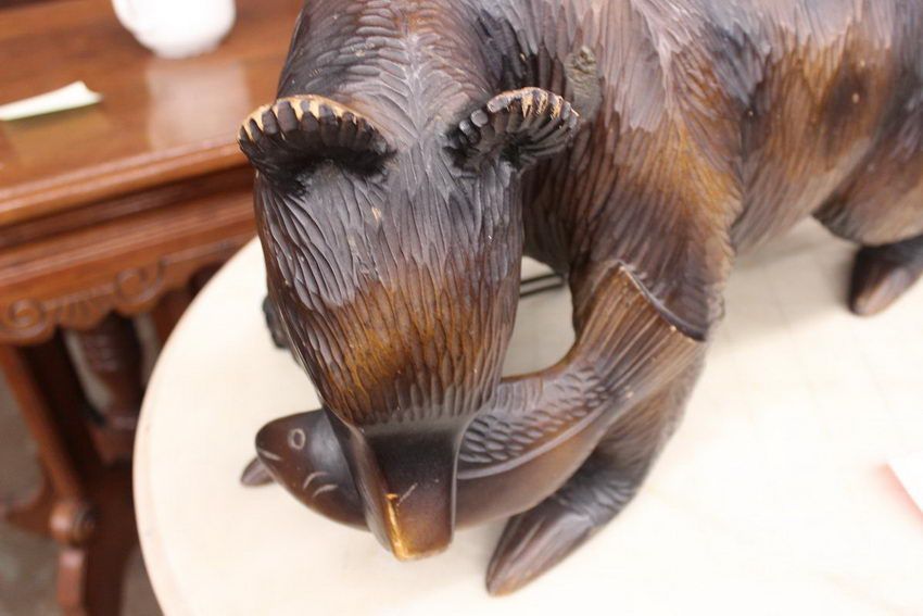 CARVED BEAR WITH FISH ALL WOOD