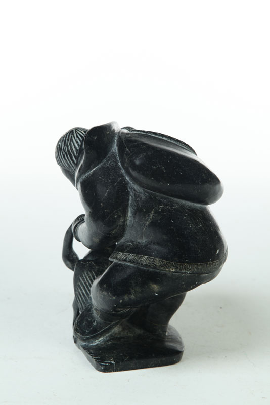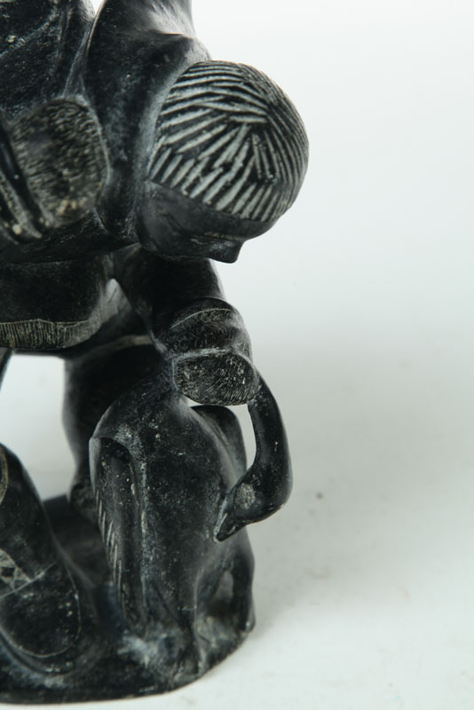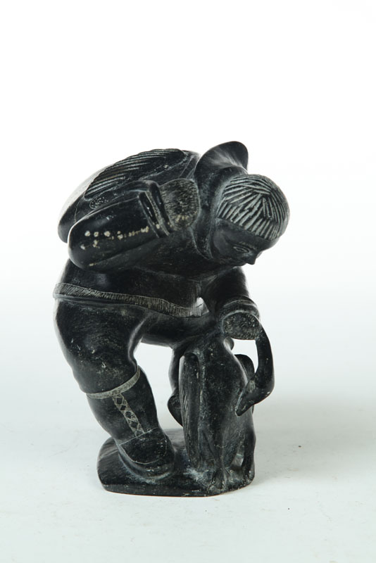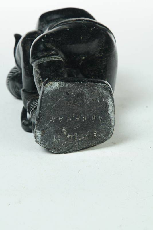Twentieth century, black soapstone. Hunter with goose signed "Ey IH II Abraham" (born 1951). 8"h.