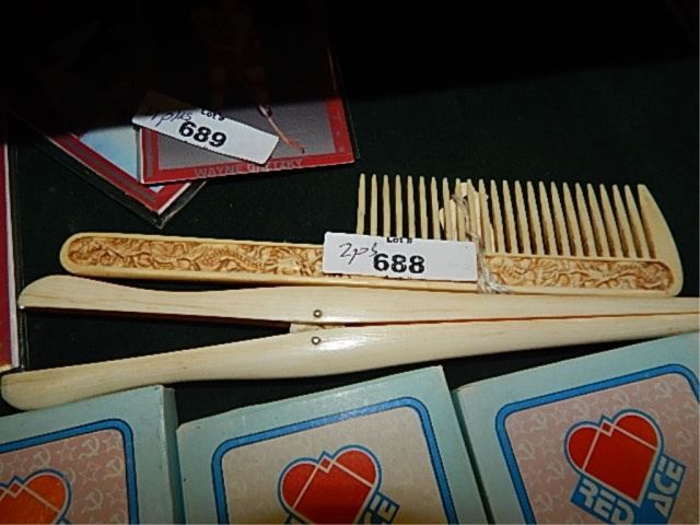 CARVED IVORY COMB AND TONGS
