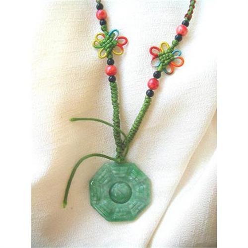 BURTON BROOK FARM ANTIQUES presents a grade A natural jade carved octagonal shape pendant on hand-made woven green cords.Pendant is 1 1/4+ inches wide x 1 1/4+ inches tall. Exotic cord is 22" long. Mint Condition