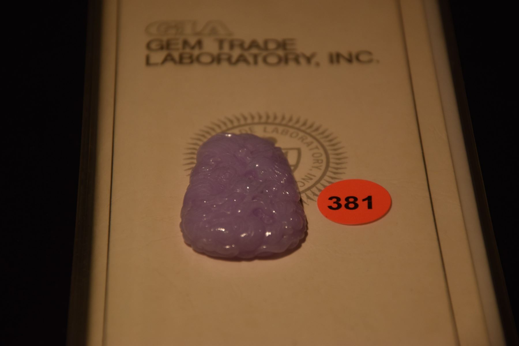 CARVED LAVENDER JADE W/GIA CERTIFICATE