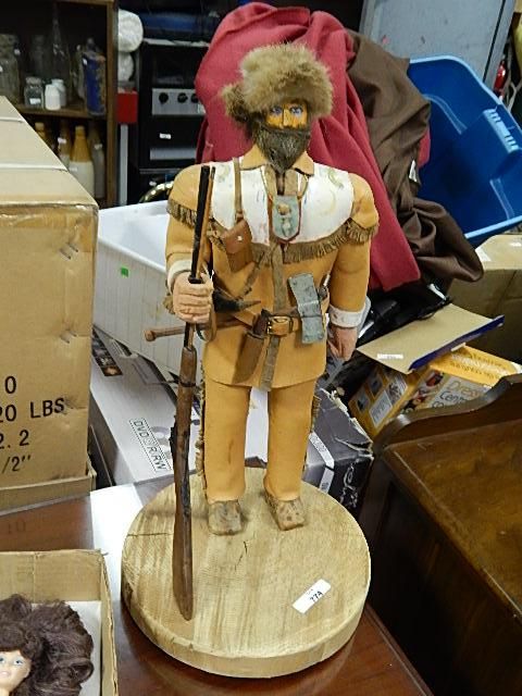 CARVED MOOD MOUNTAIN MAN WITH REAL FUR HAT