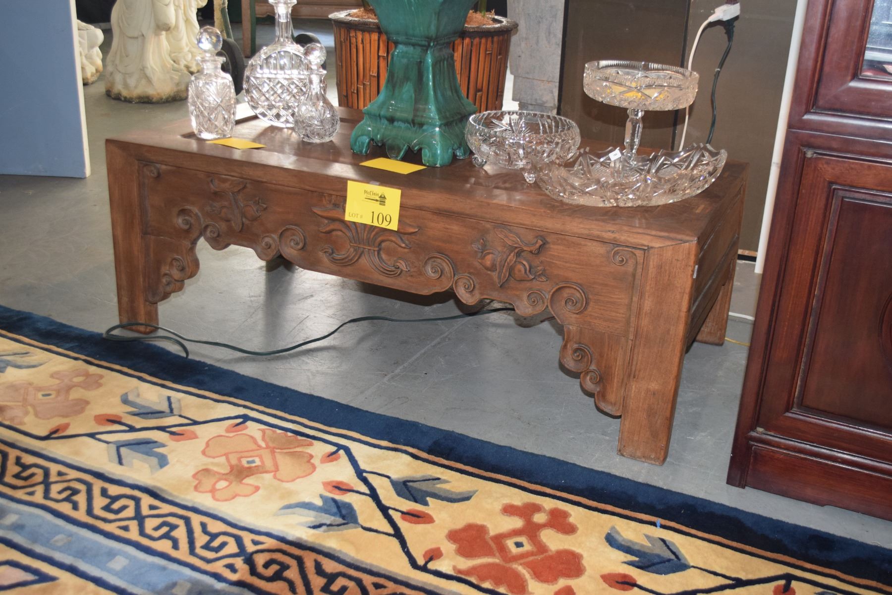 CARVED ROSEWOOD CONSOLE TABLE (43 1/2" X 21 1/2" 15")