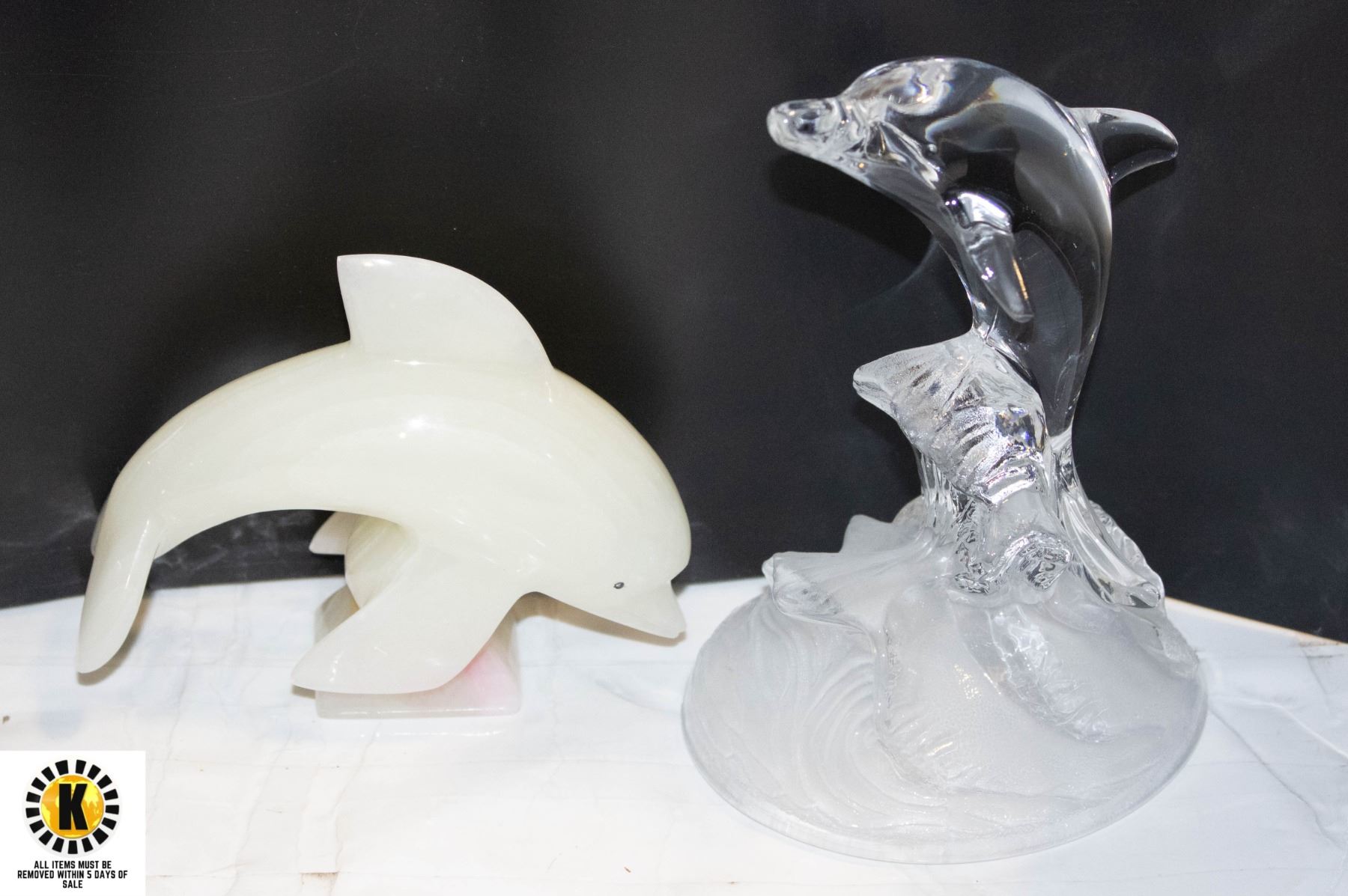 CARVED STONE & BLOWN GLASS DOLPHINS