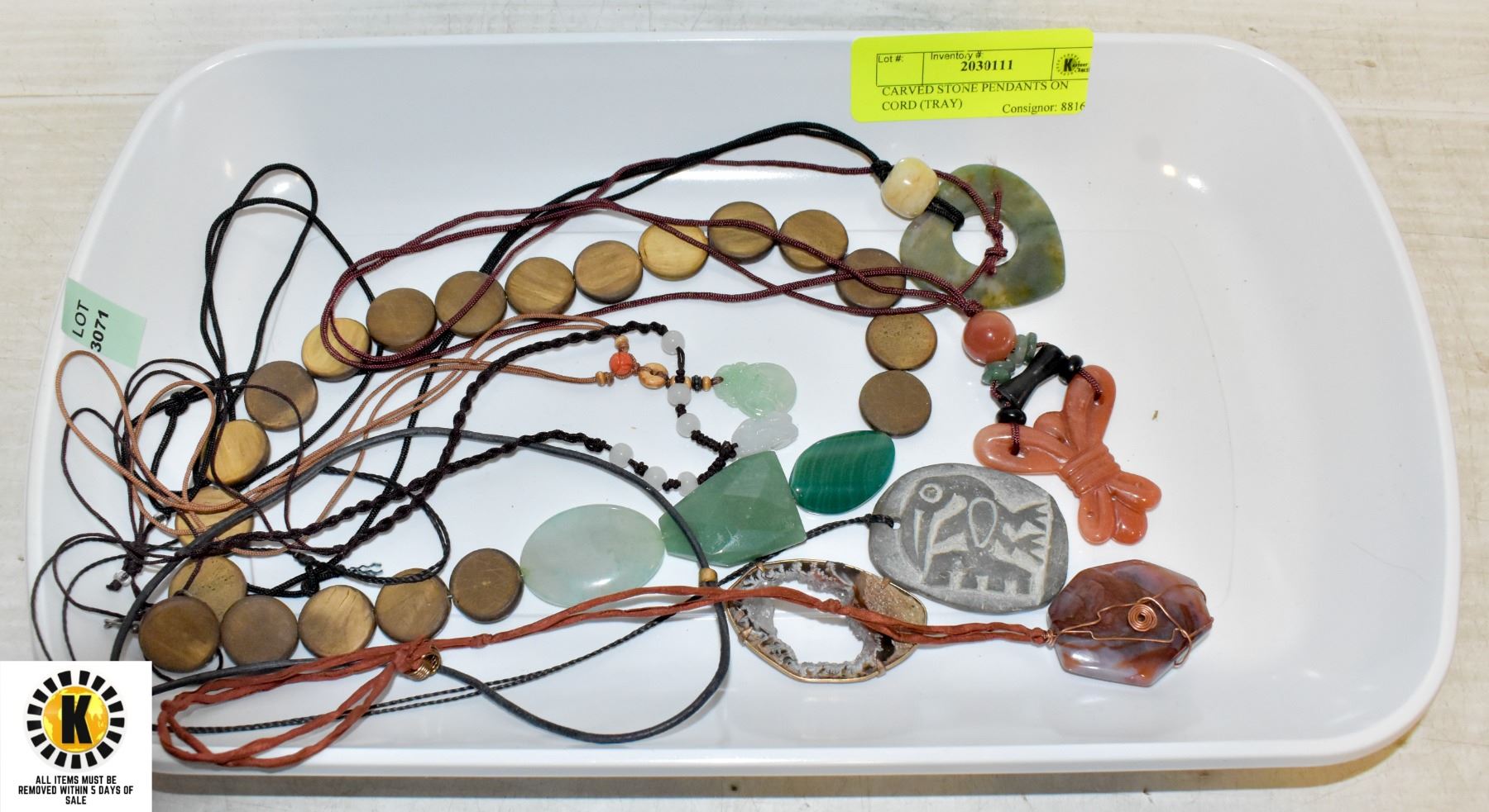CARVED STONE PENDANTS ON CORD (TRAY)