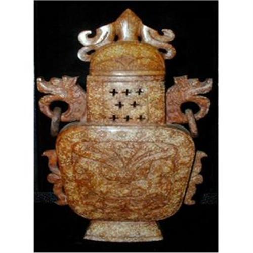 Incredible hand carved stone vase from China. Beautiful design with dragons on the side with the rings carved out of one piece. A real buy at only $80.00.