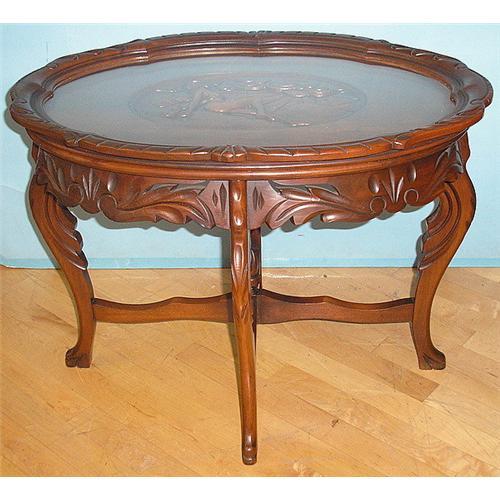 <tr><td><font size="2" face="Arial, Helvetica, sans-serif"><strong><font color="#000033">Title:</font></strong>CARVED WALNUT TRAY TABLE WITH NUDE TOP</font></td></tr>