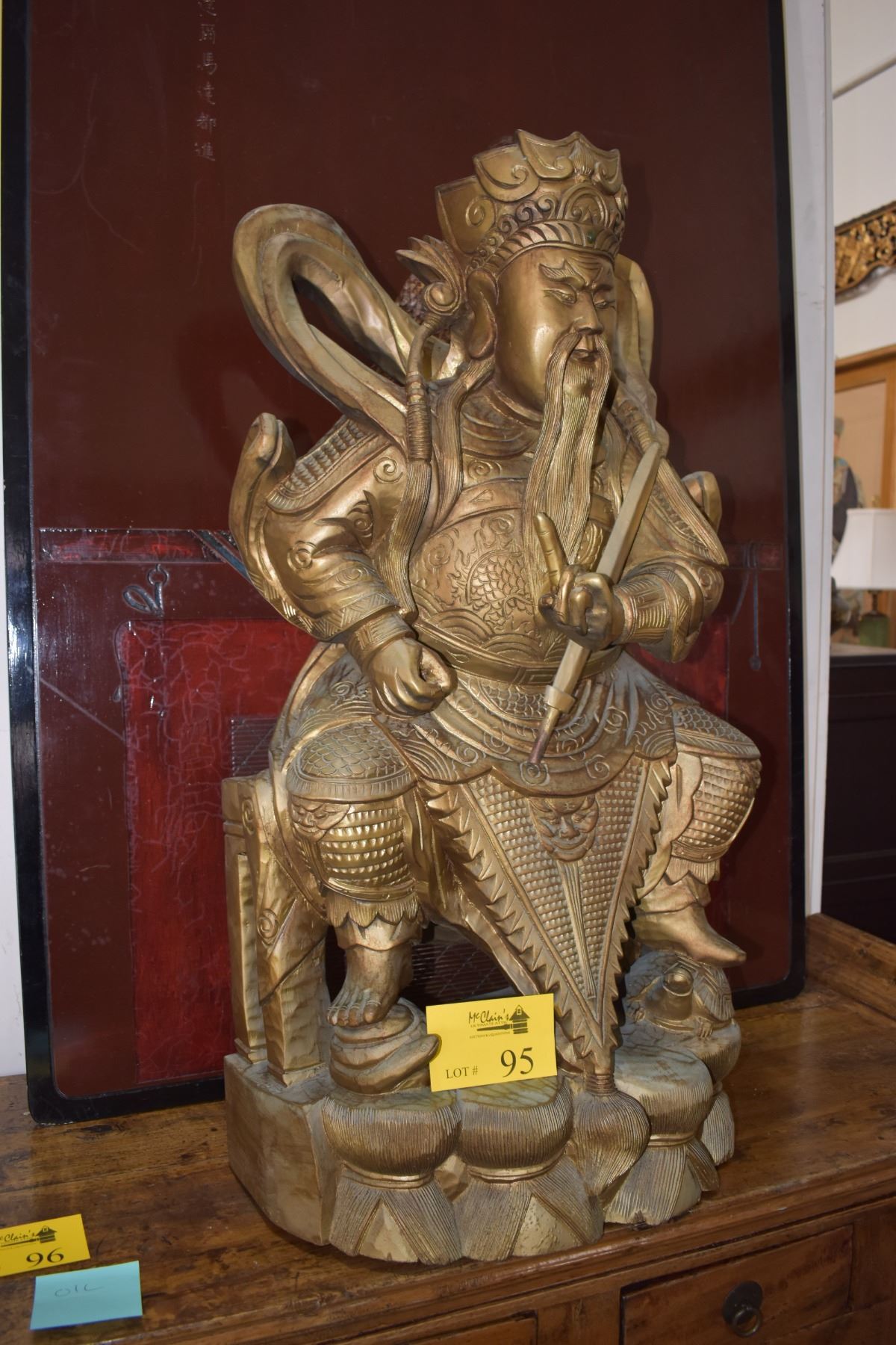 CARVED WOOD CHINESE GUARDIAN FIGURE (APPROX 2' 10 1/2' H)