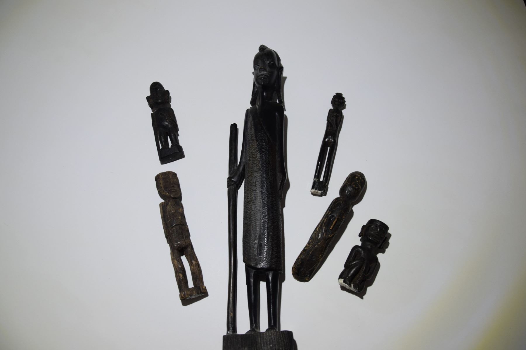 CARVED WOOD FIGURES (3 1/2"H 4 1/2" H, 6" H & 15" H) (6 PCS)