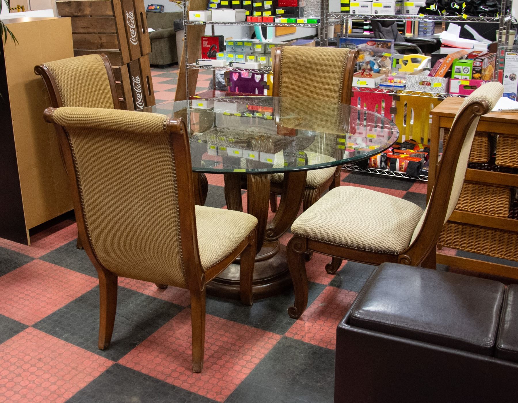 TABLE 28" ROUND/GLASS TOP 54" ROUND **ALL ITEMS MUST BE REMOVED BY 5PM SATURDAY, NOVEMBER 26TH, 2022. ALL REMAINING ITEMS WILL BE SUBJECT TO A $6.00 PER DAY STORAGE CHARGE. ANY ITEMS REMAINING AFTER MONDAY, DECEMBER 5, 2022 WILL BE CONSIDERED FORFEITED. NO REFUNDS WILL BE ISSUED FOR FORFEITED ITEMS. TO SCHEDULE A PICK UP APPOINTMENT CLICK HERE