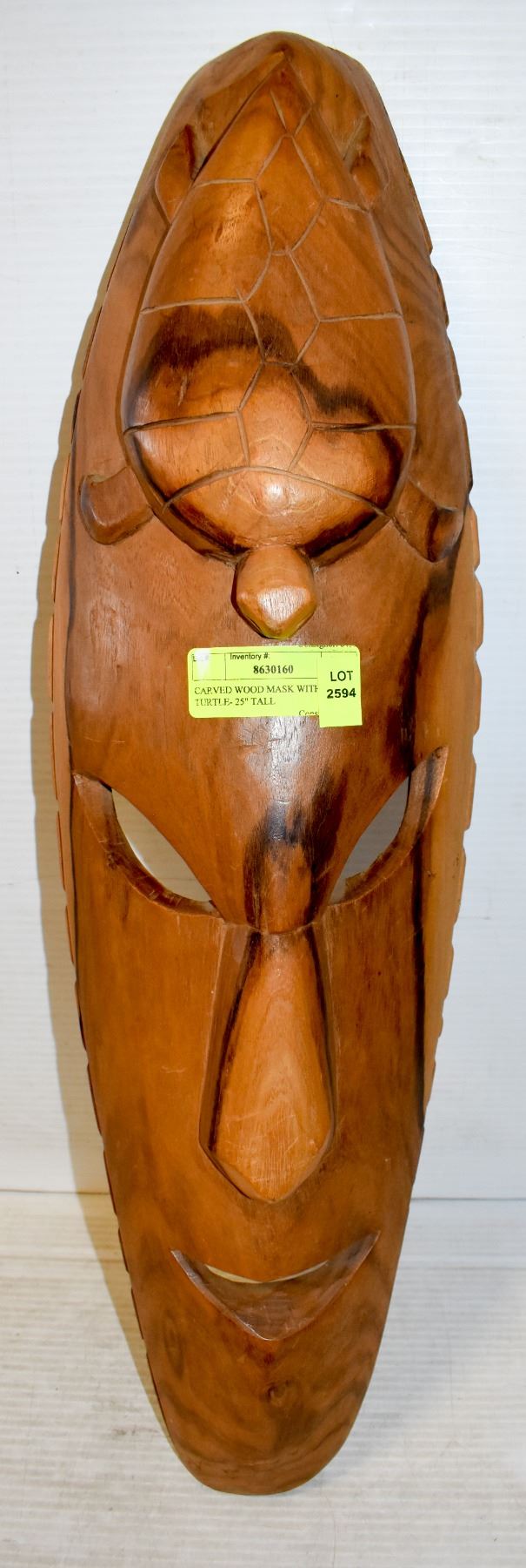 CARVED WOOD MASK WITH TURTLE - 25" TALL