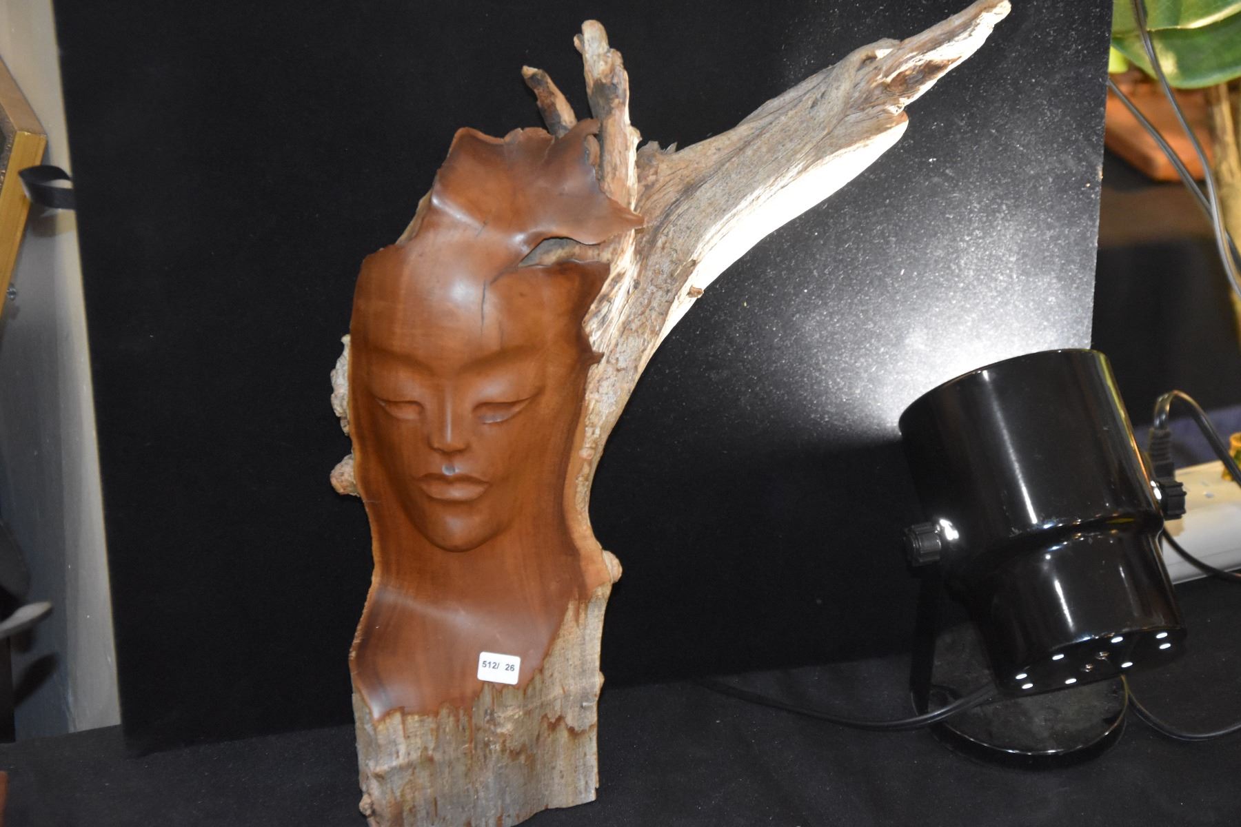 CARVED WOOD PELE CARVING, ATTRIBUTED TO PAUL FUJIMOTO (16" X 13")