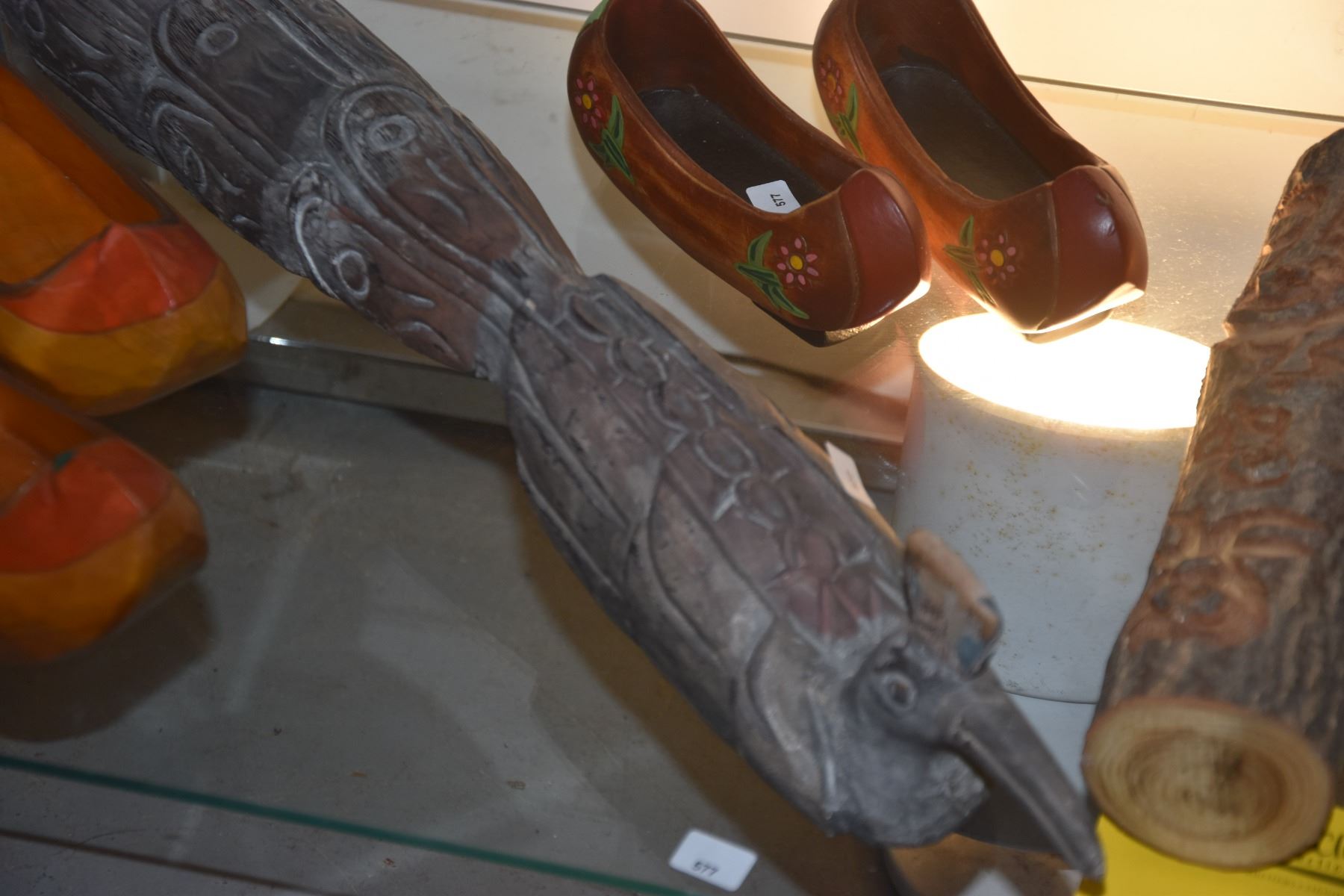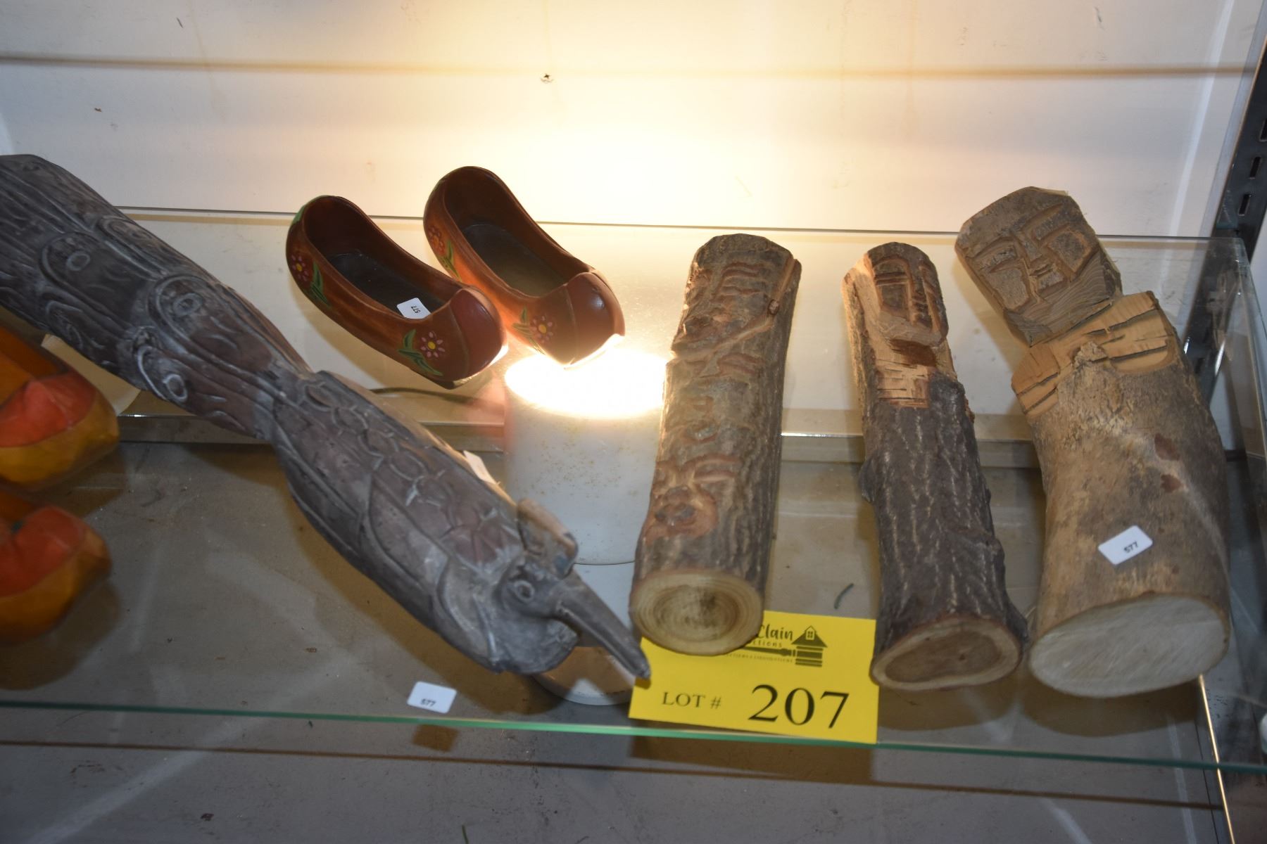 CARVED WOOD SHOES & WOOD CARVINGS (8 PCS)